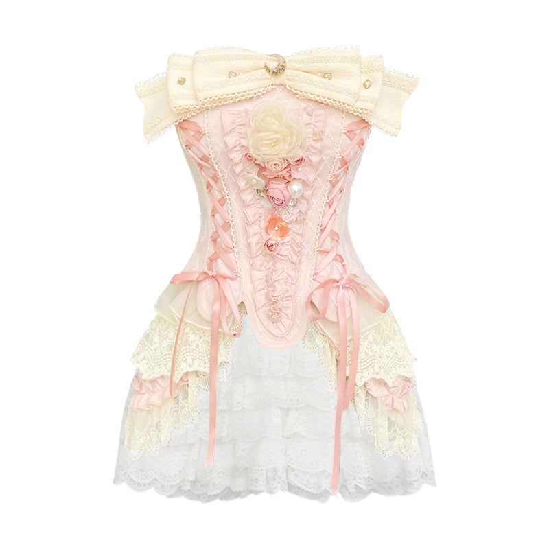 Creamy Cute Coquette Sweet Pink Corset Balletcore Strapless Top & White Shorts Two Piece Set