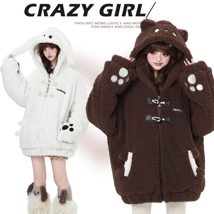 Crazy Girl Animal Series Black Cat Brown Bear White Rabbit Jacket