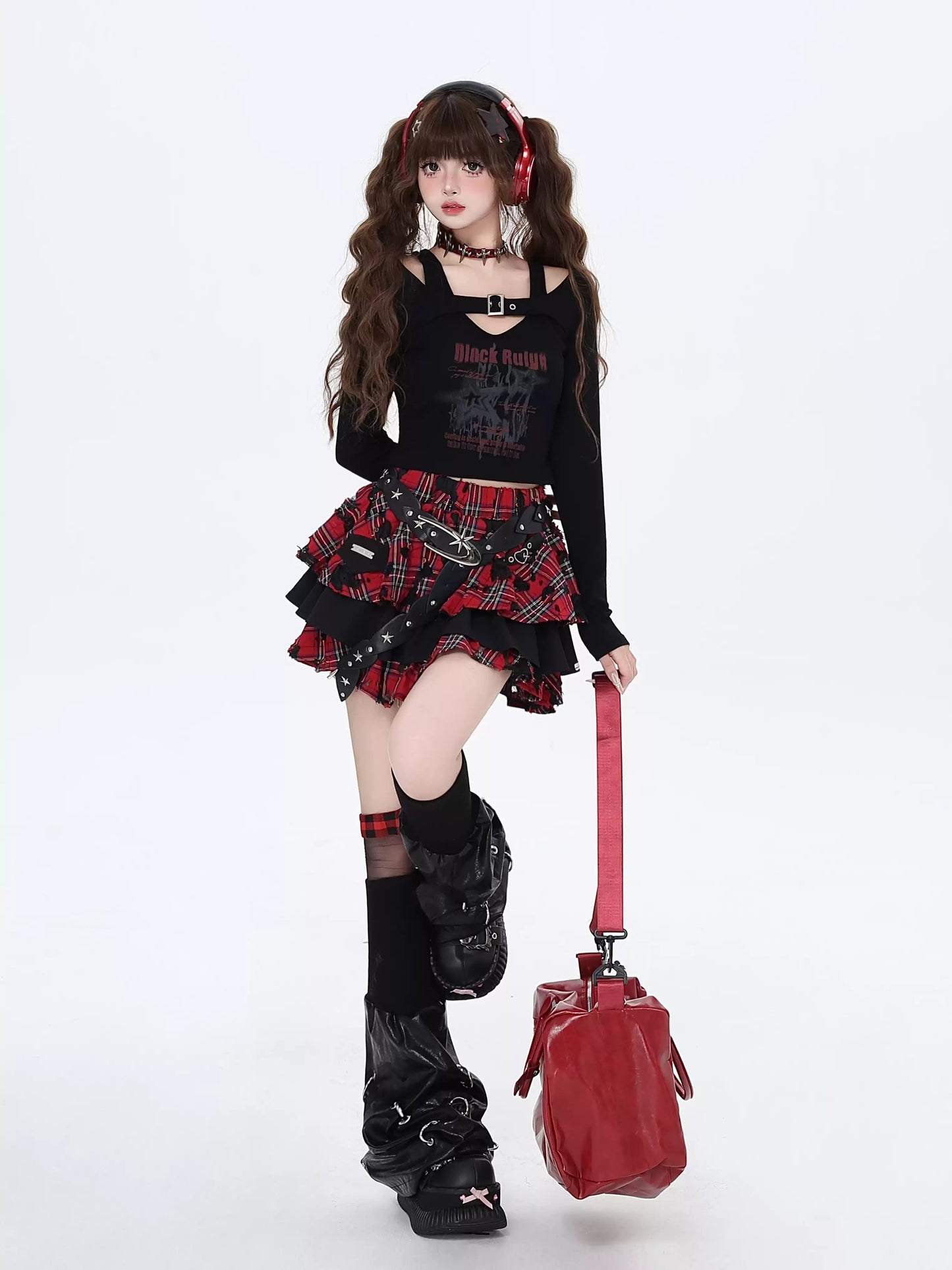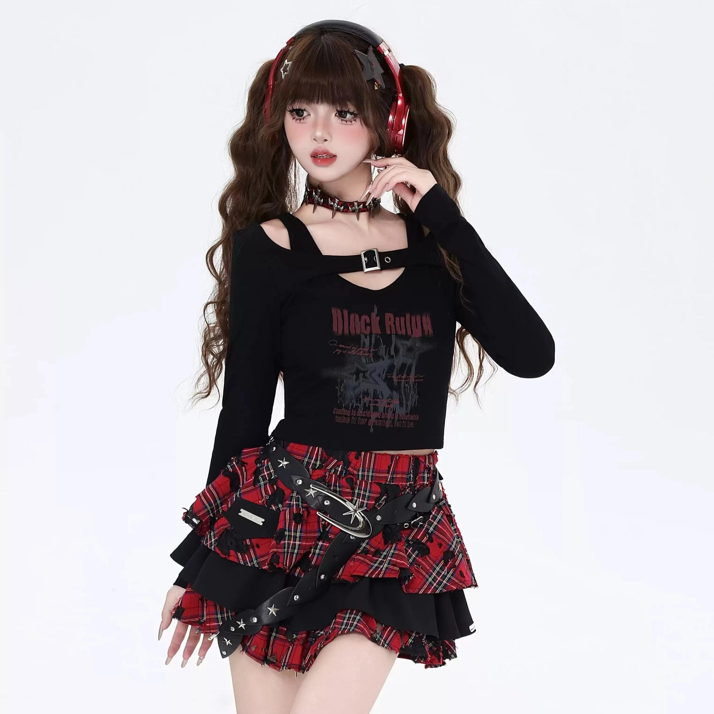 Crazy Girl Black Star Graffiti Black White Shirt Top