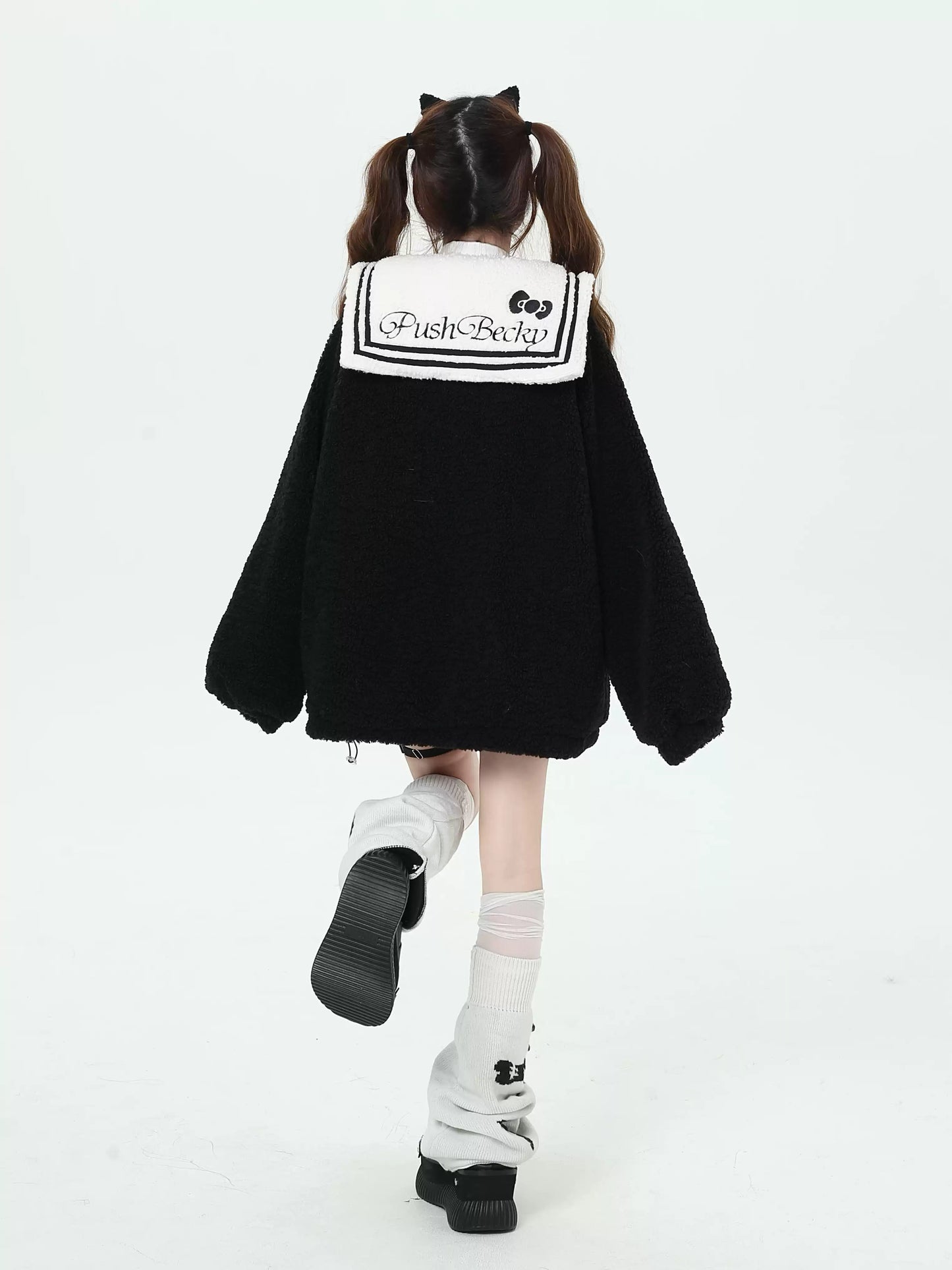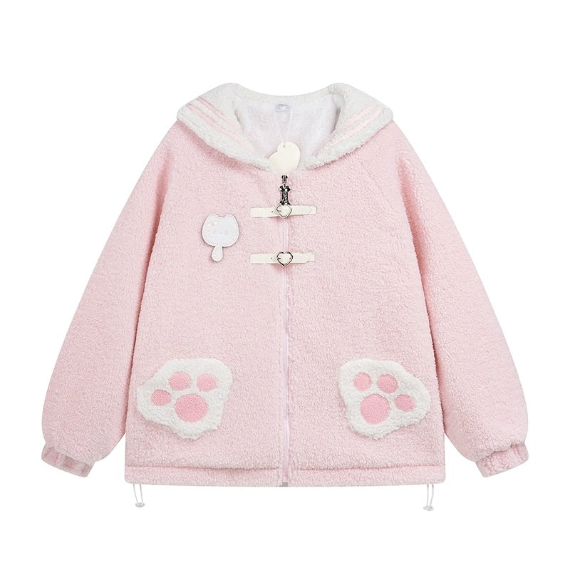 Crazy Girl Kitty Cat Claw Black Pink Plush Jacket