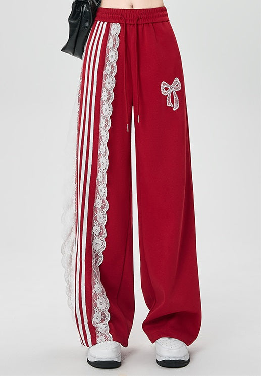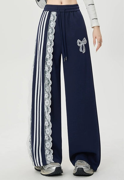 Crazy Girl Lace Navy Blue Red Elastic Waist Sweatpants