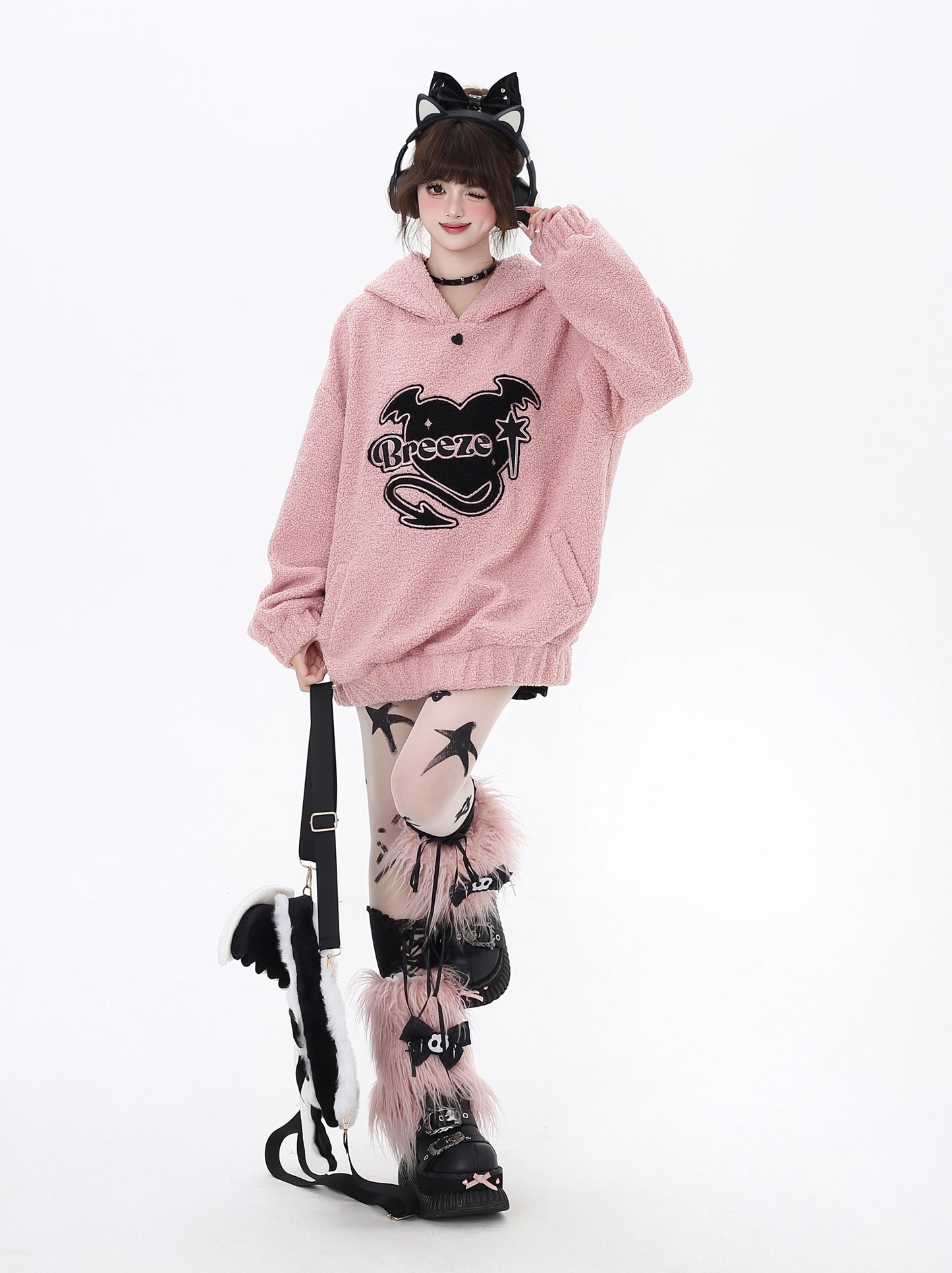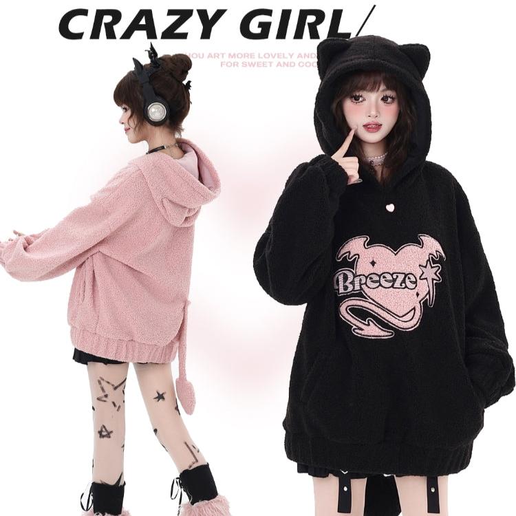 Crazy Girl Little Devil Breeze Pink Black Jacket Hoodie