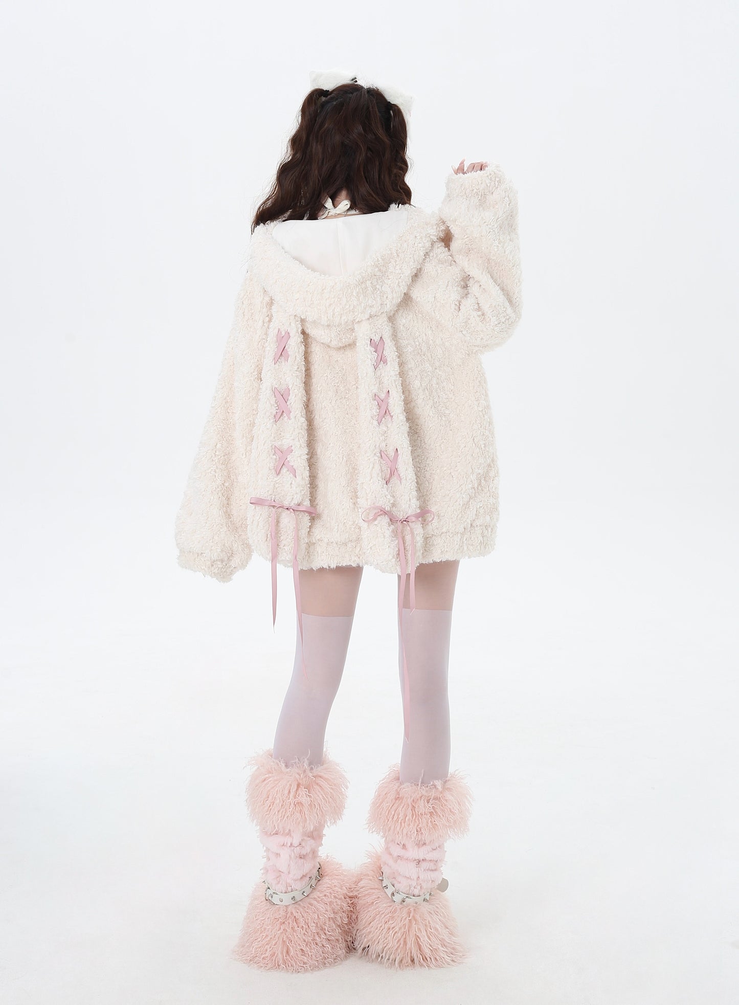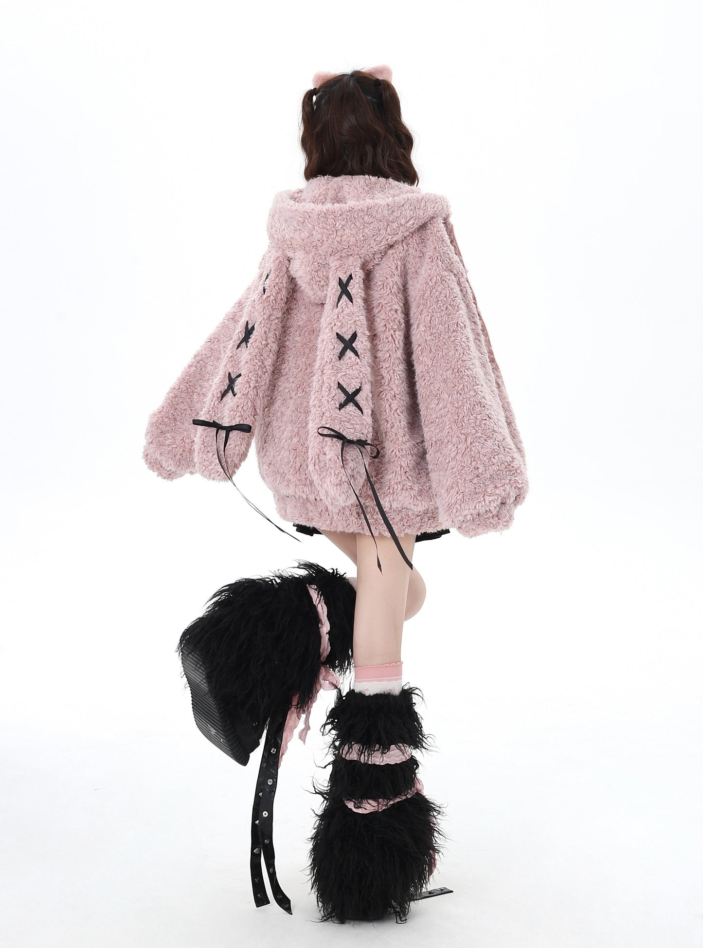 Crazy Girl Patchwork Bunny Pink White Rabbit Ears Jacket Hoodie