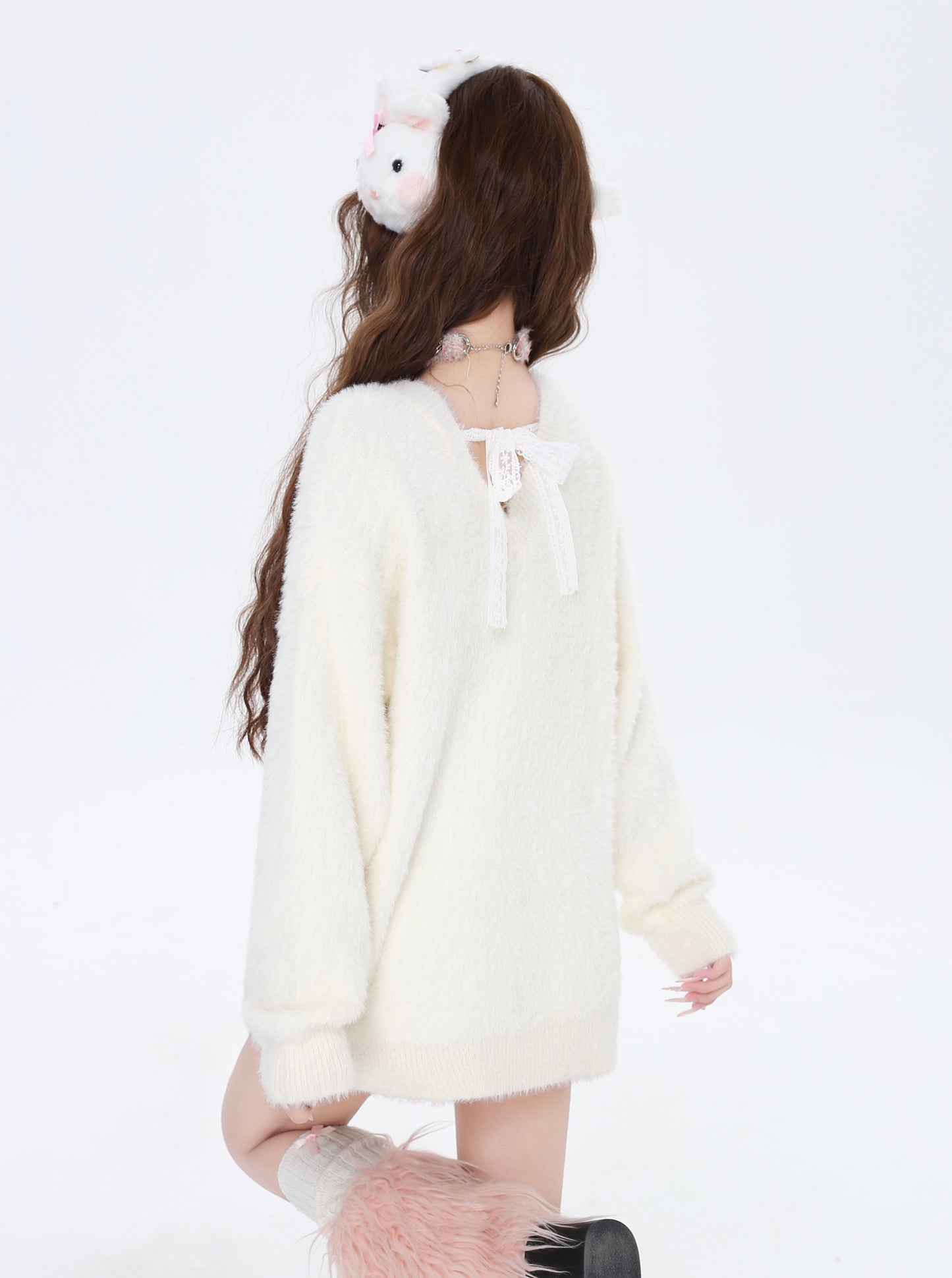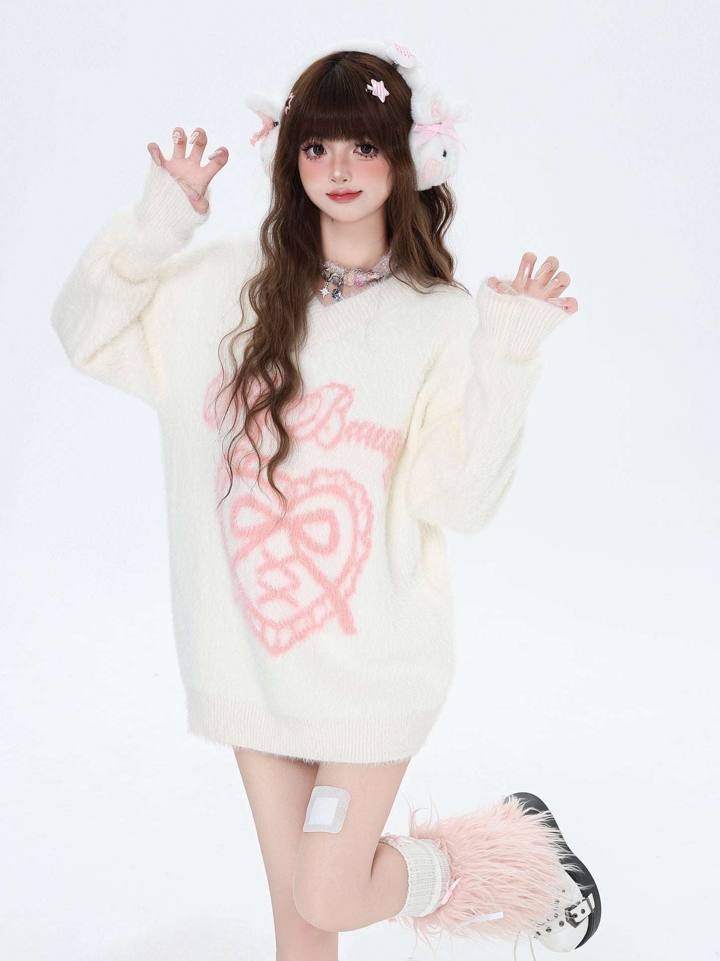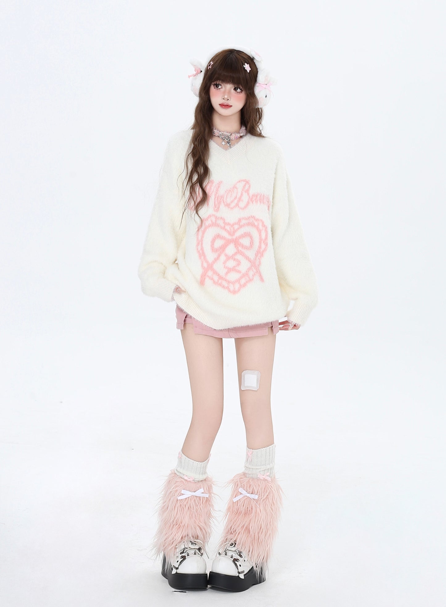 Crazy Girl Sweet Beauty Pink White Black Mohair Sweater