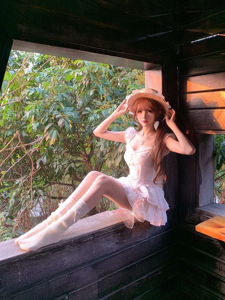 Creamy Cute Pink Mist Rose Top & Skirt Two Piece Set