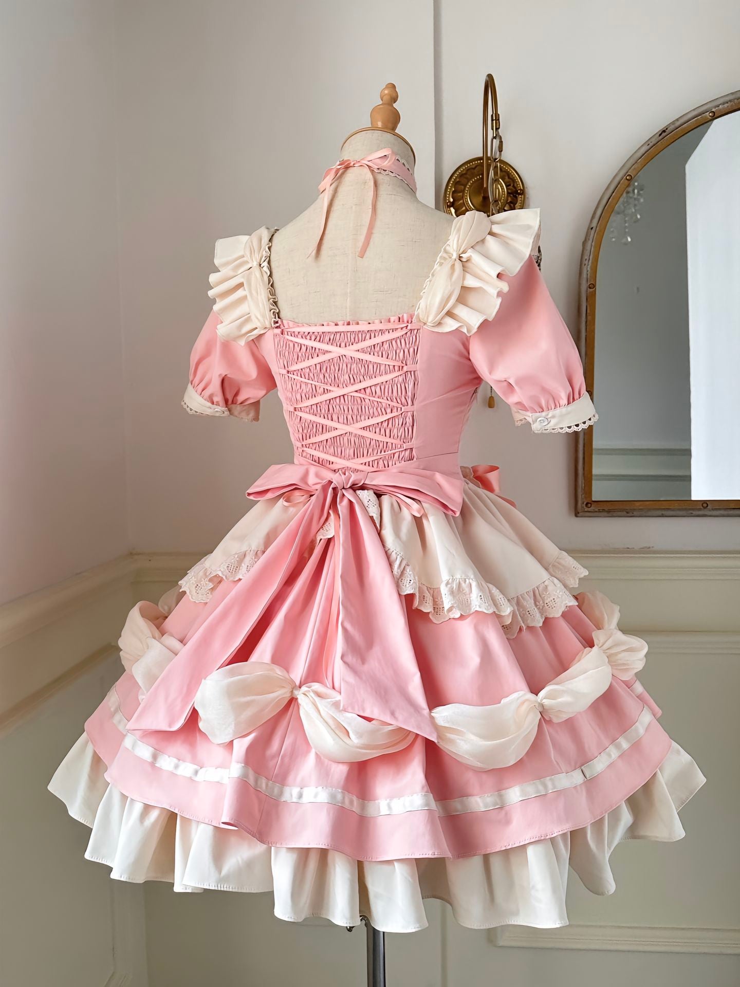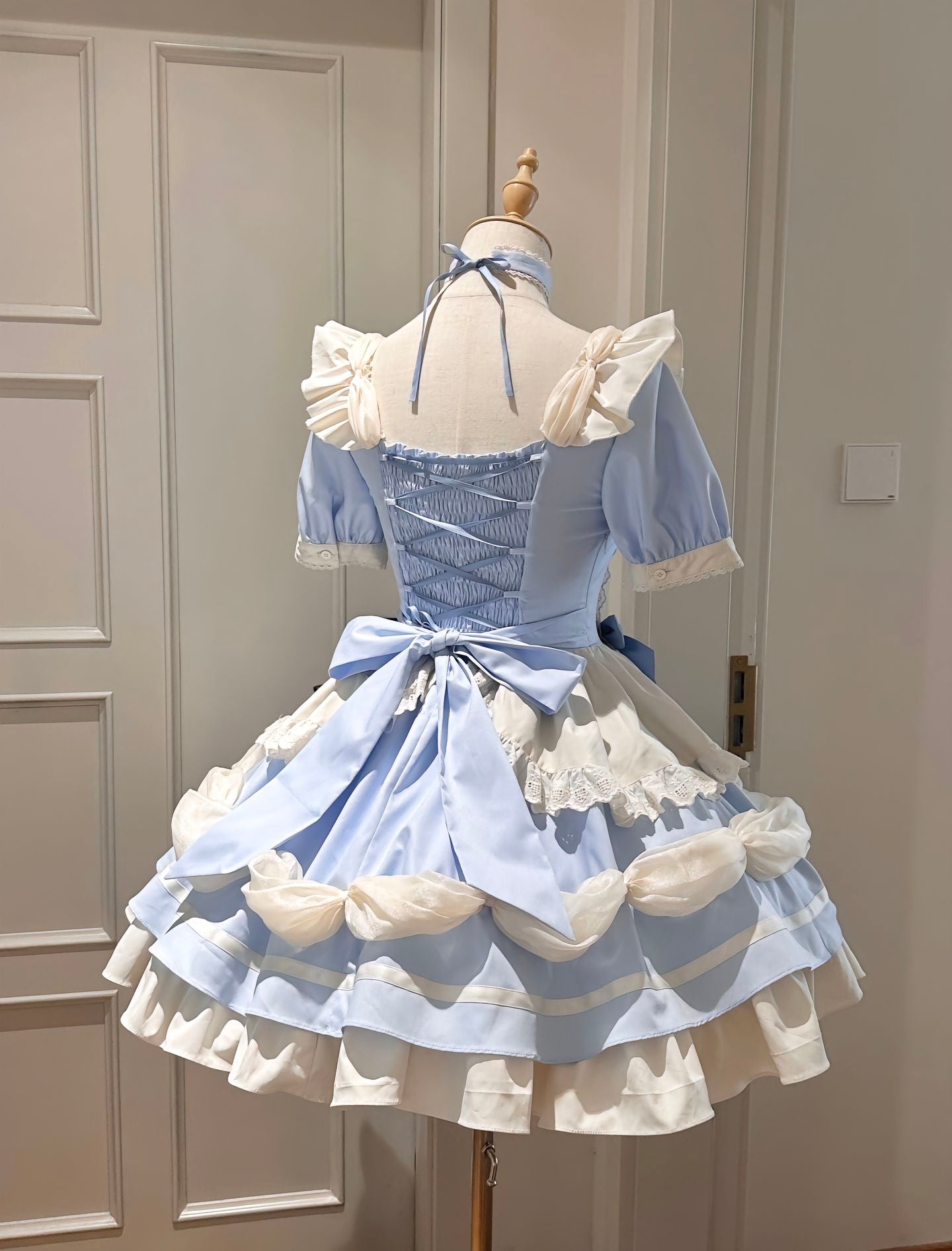 Flying Diary Cat Girl Pink & Blue Maid Lolita Dress