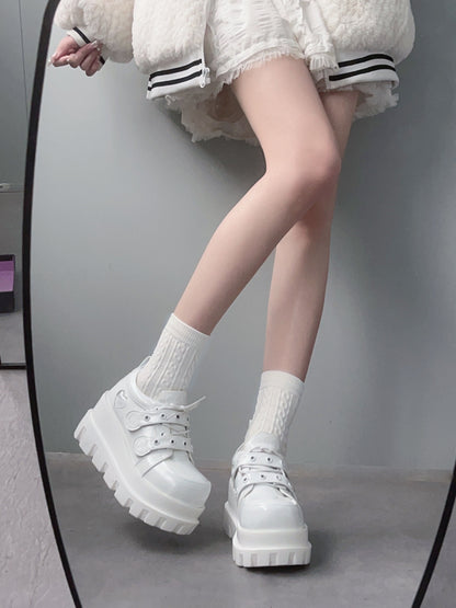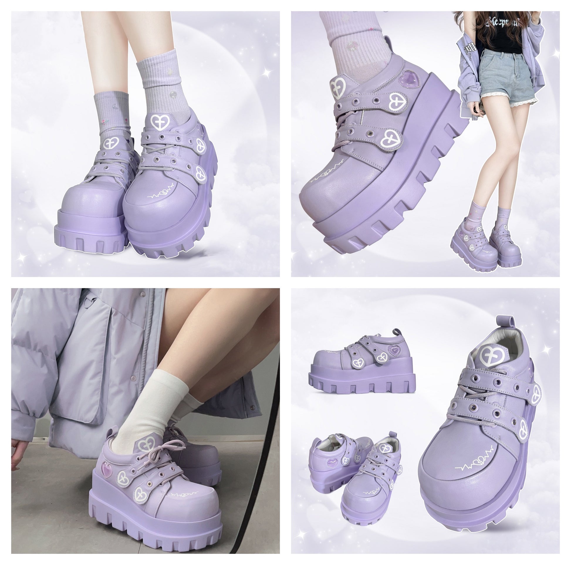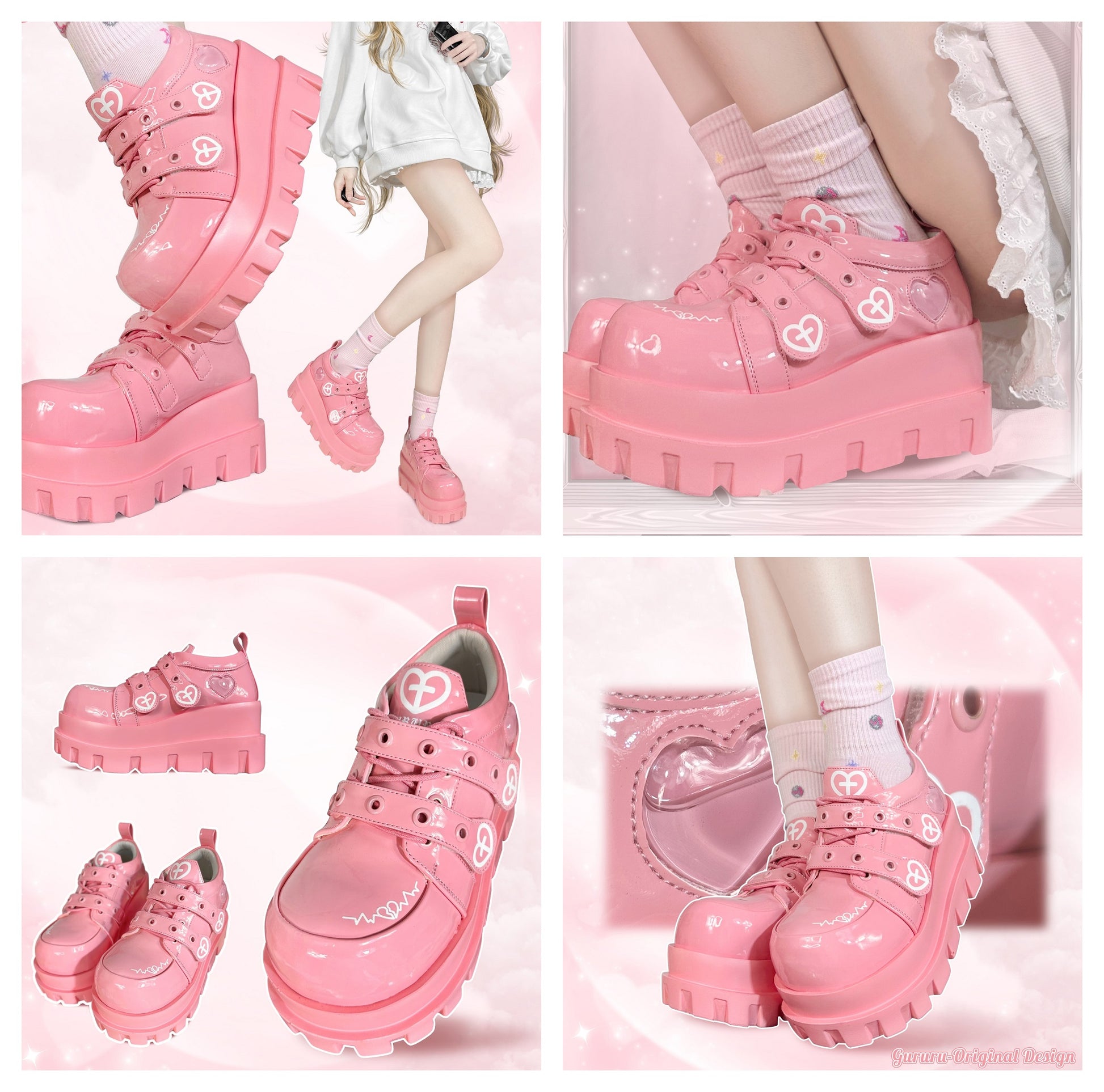 Gururu Telepathy Cross Heart Black Pink White Purple Plantform Wedges Shoes