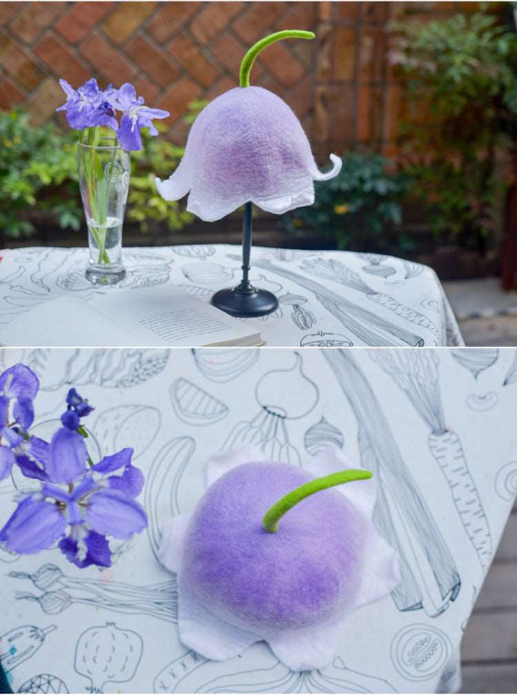 Bell Orchid Lily of Valley Purple Fairy Flower Cute Wool Hat