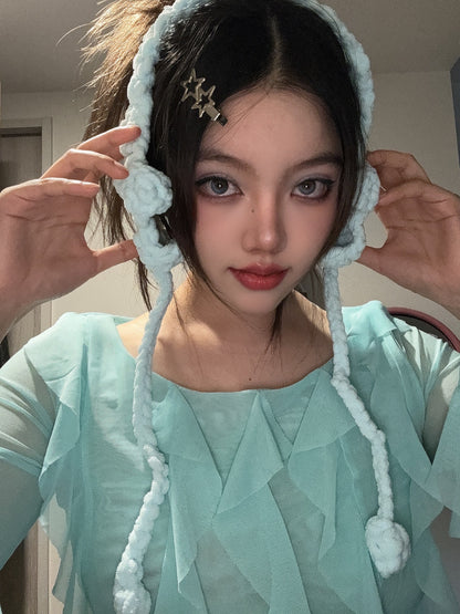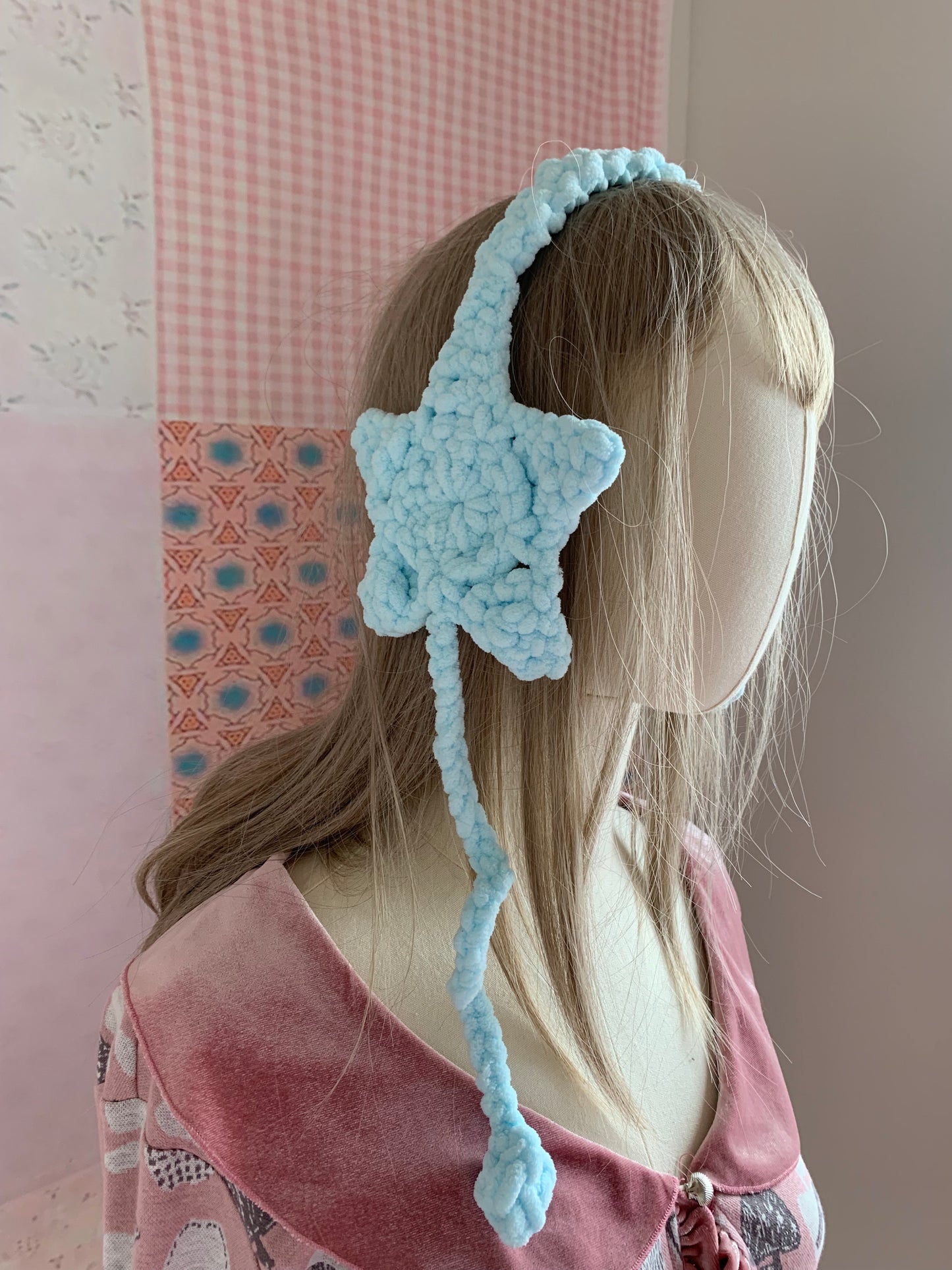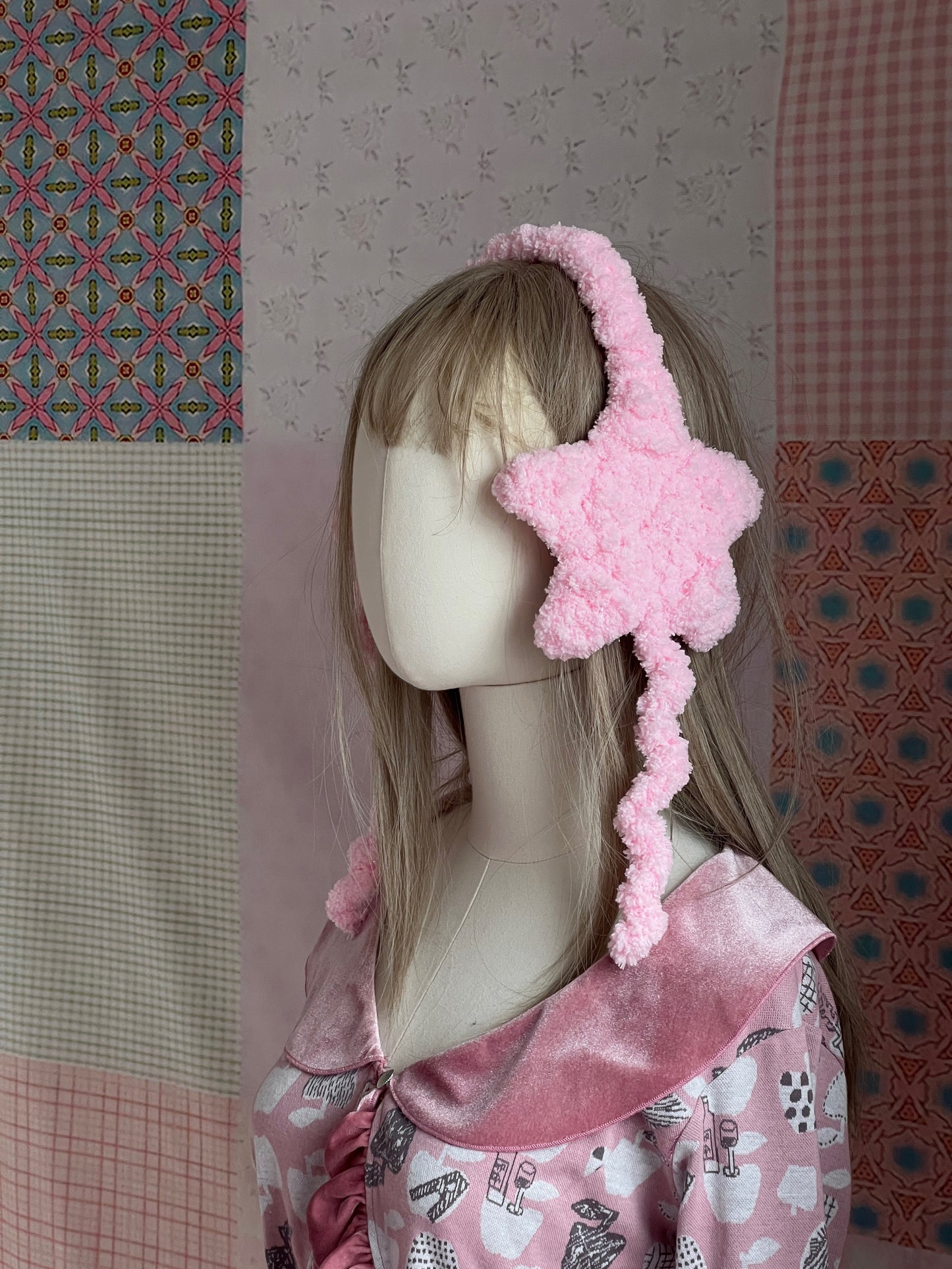 Handmade Crochet Fantasy Plush Star Pink Blue Y2K Winter Earmuffs