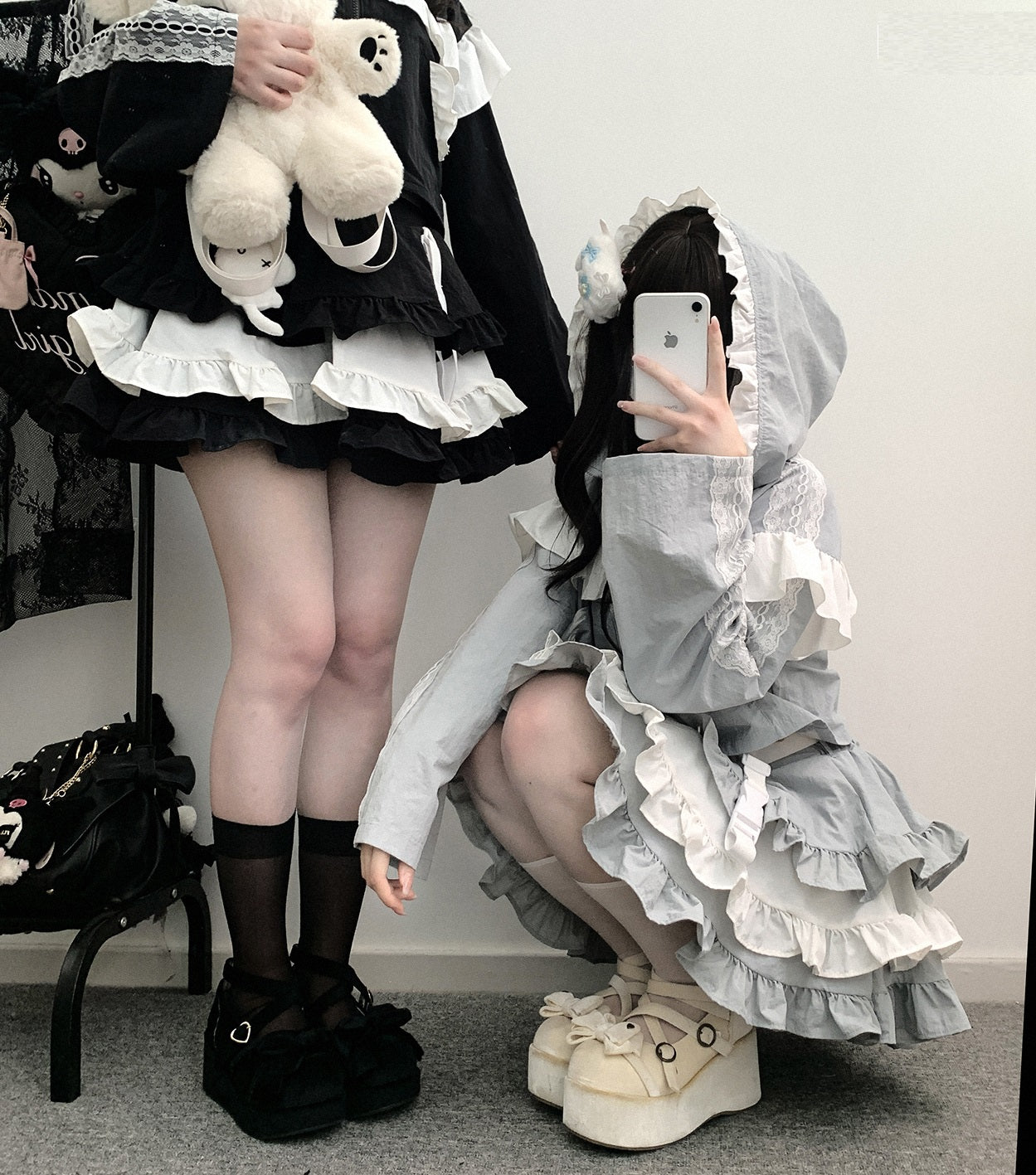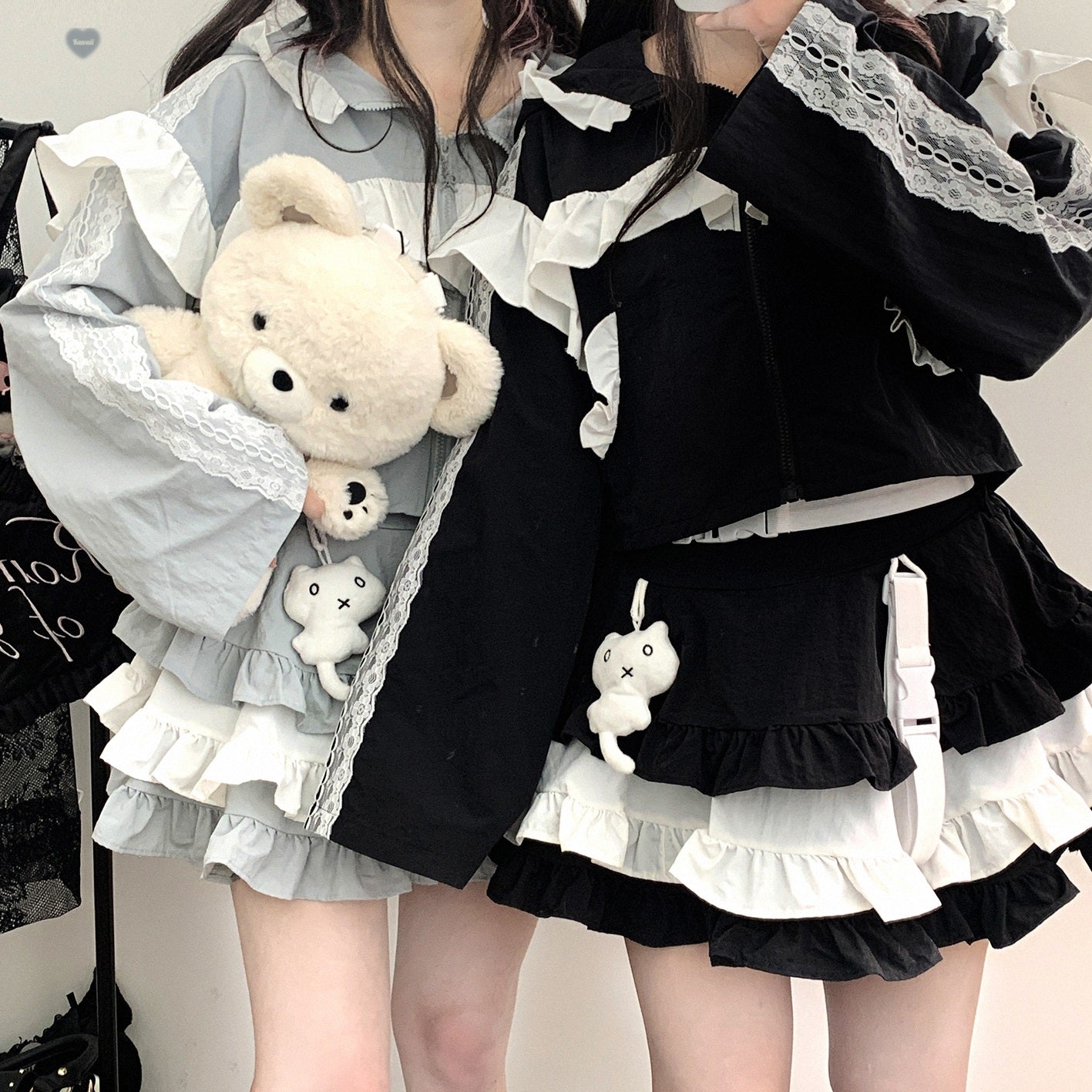 Kitten Bullet Faulty Kitten Pink Blue Black Hoodie Skirt Two Piece Set