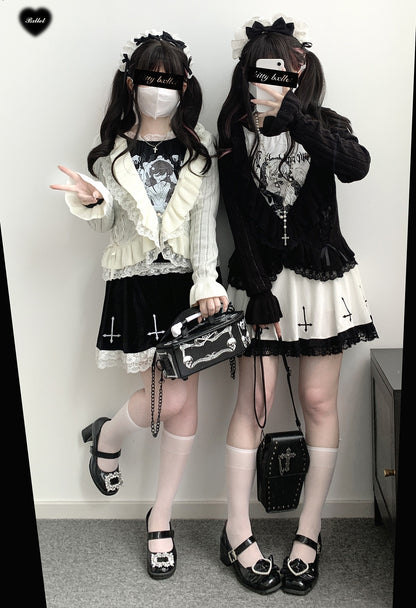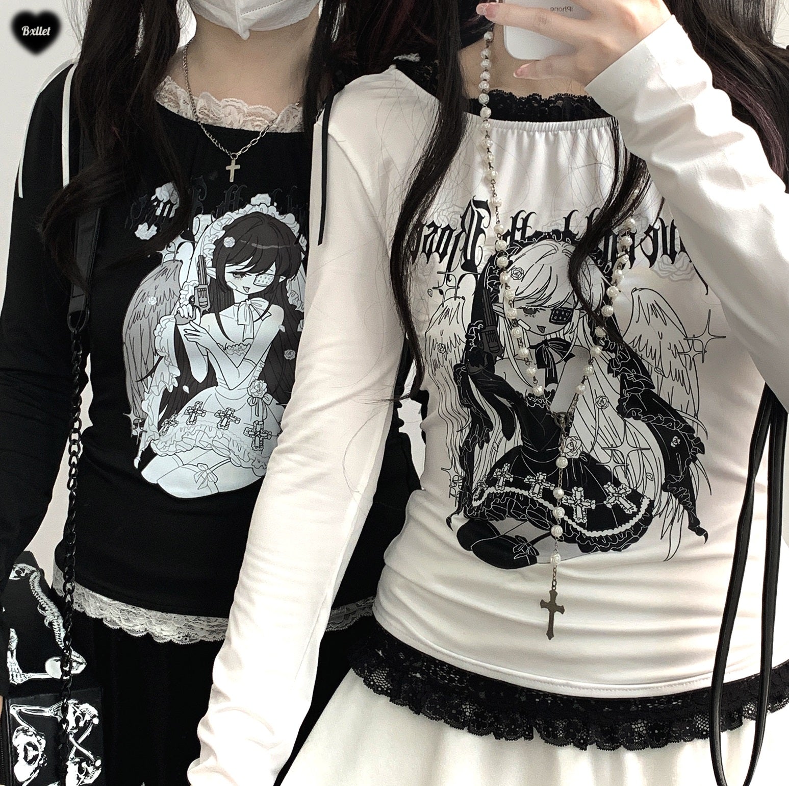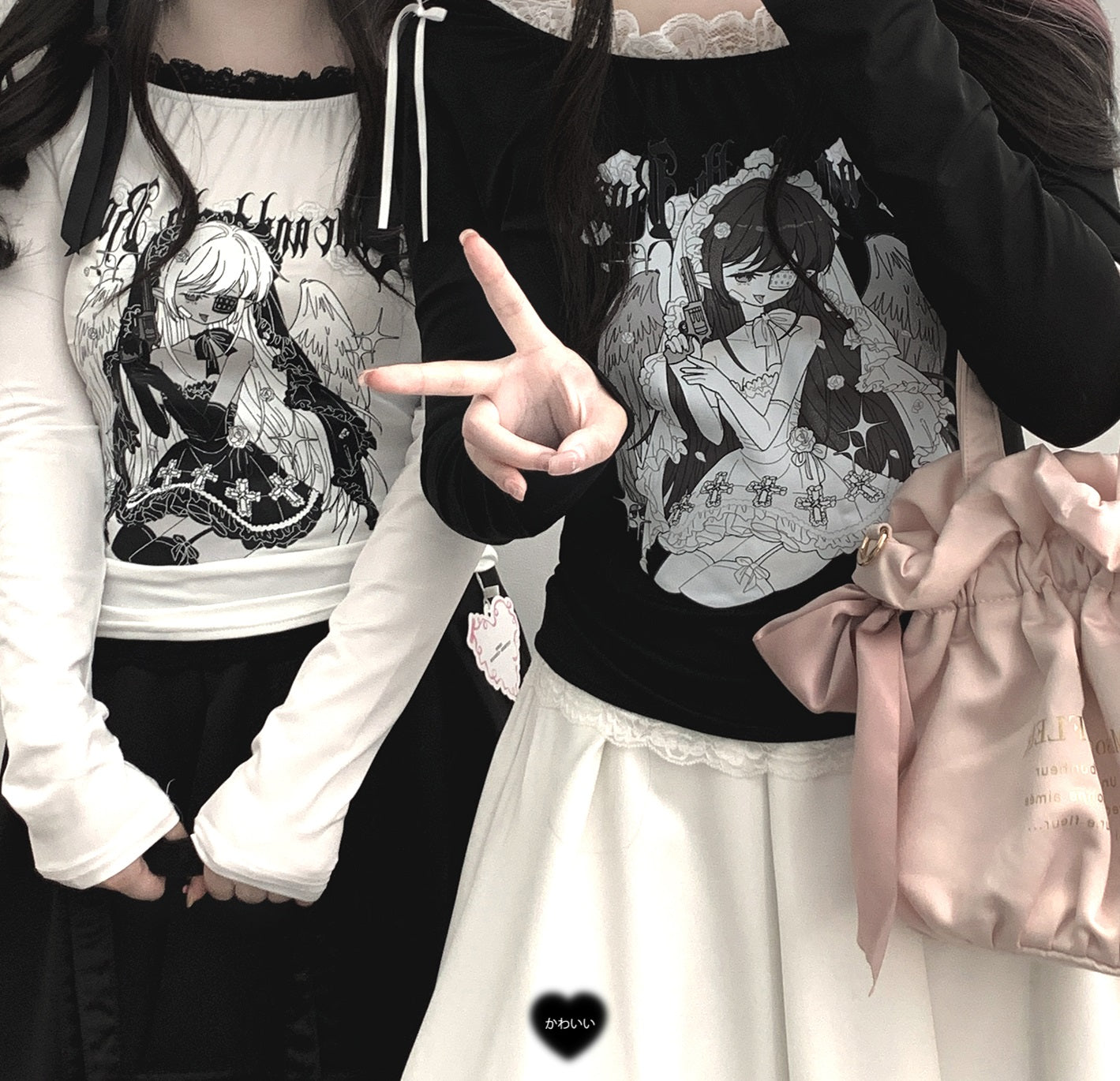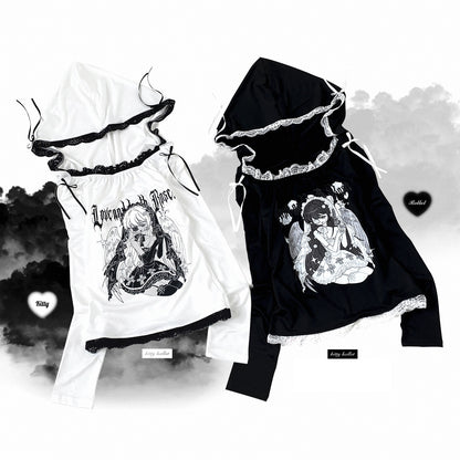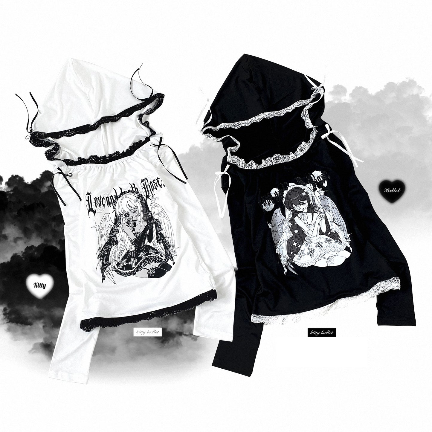 Kitten Bullet Love and Death Rose Black White Shirt Top