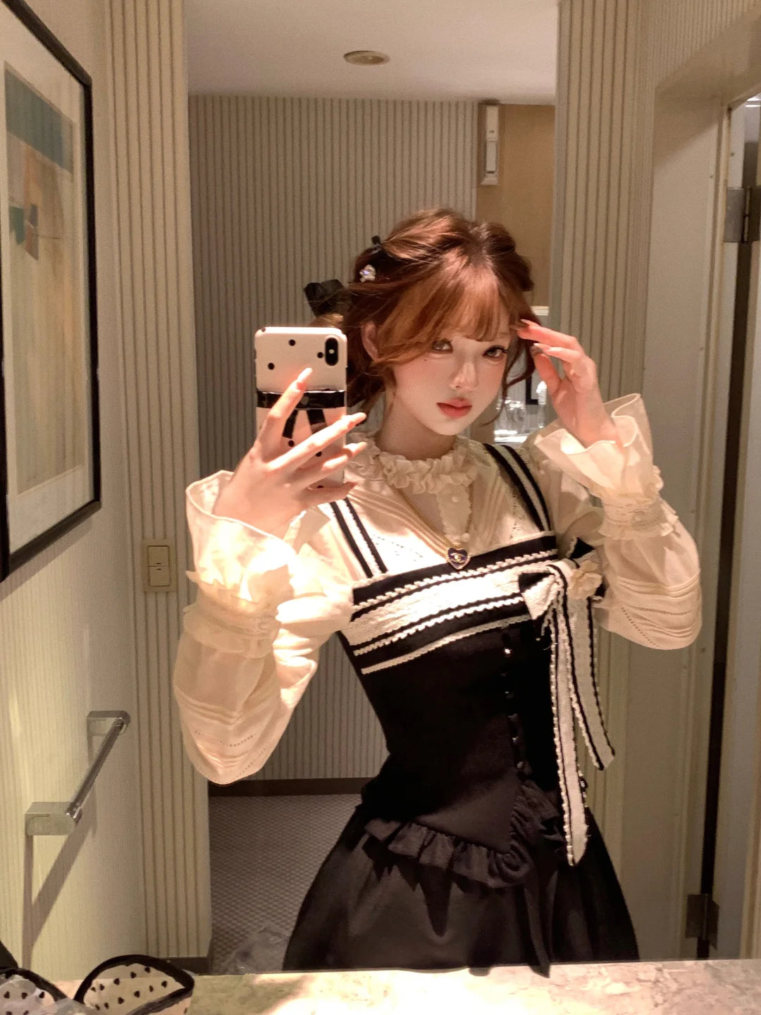 Note: the top is a fake two-piece, with the blouse and camisole sewn in together.