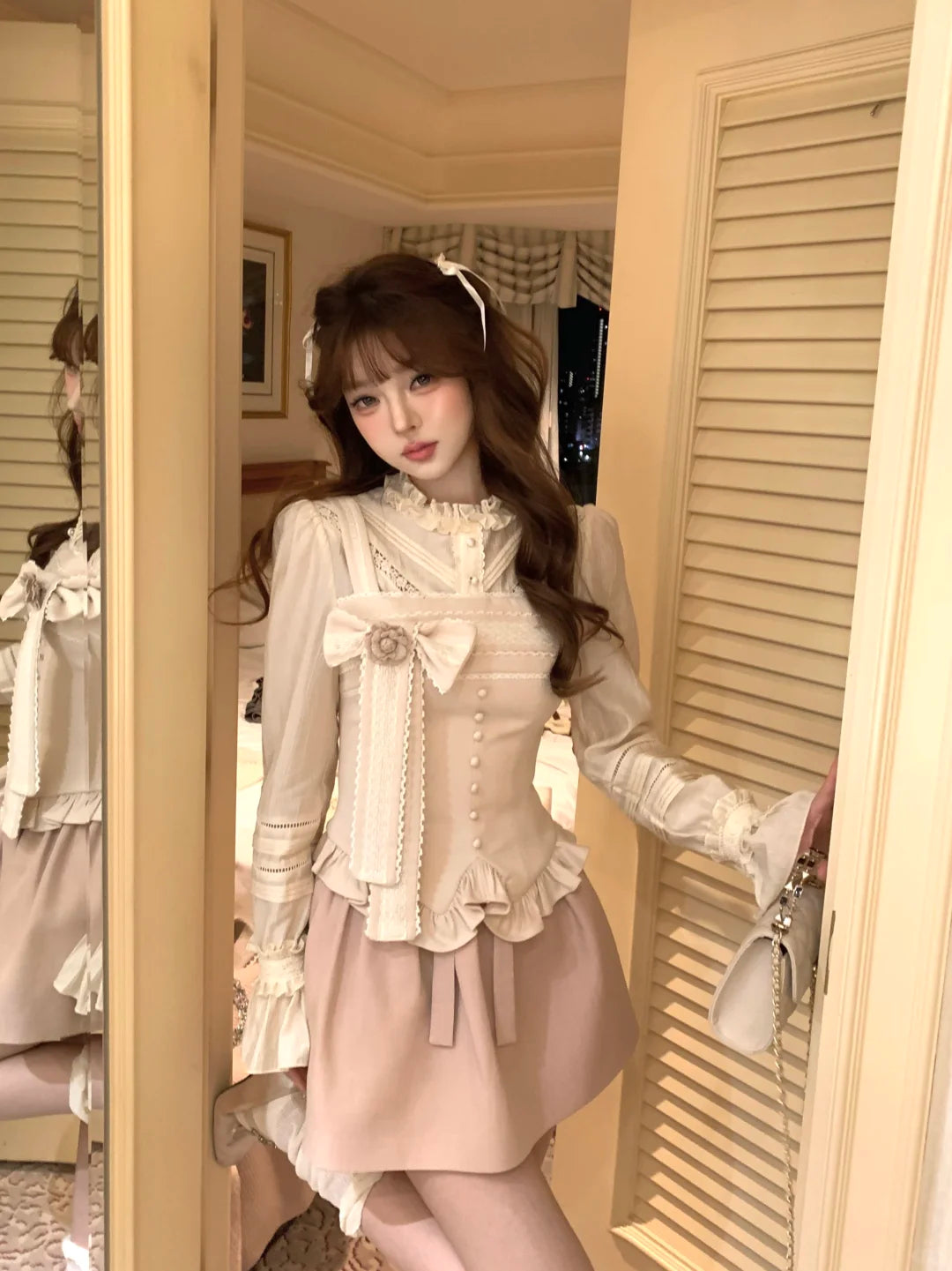 Note: the top is a fake two-piece, with the blouse and camisole sewn in together.