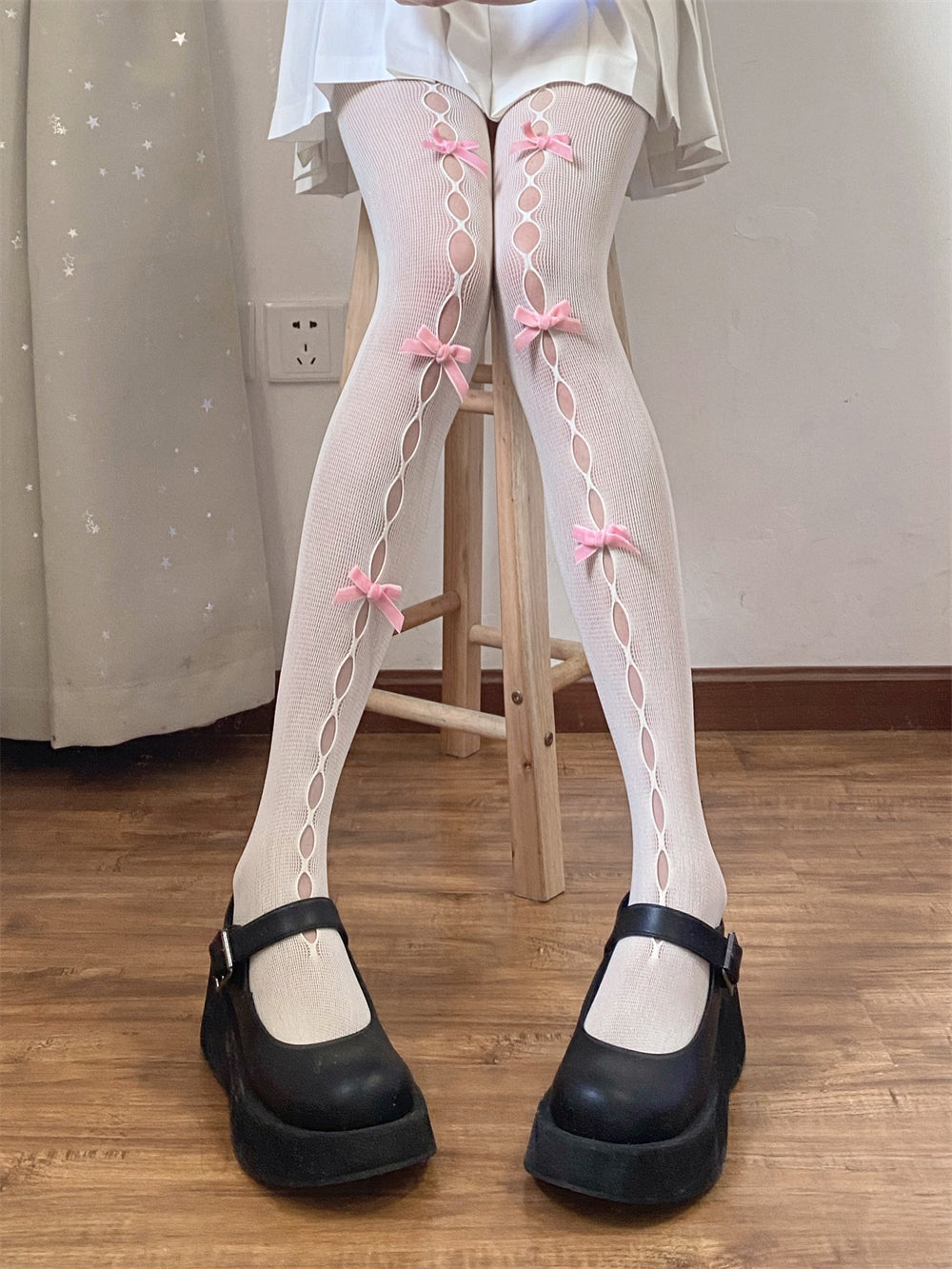 Lolita Bow Lace Hollow White Pink Red Purple Black Tights Stockings