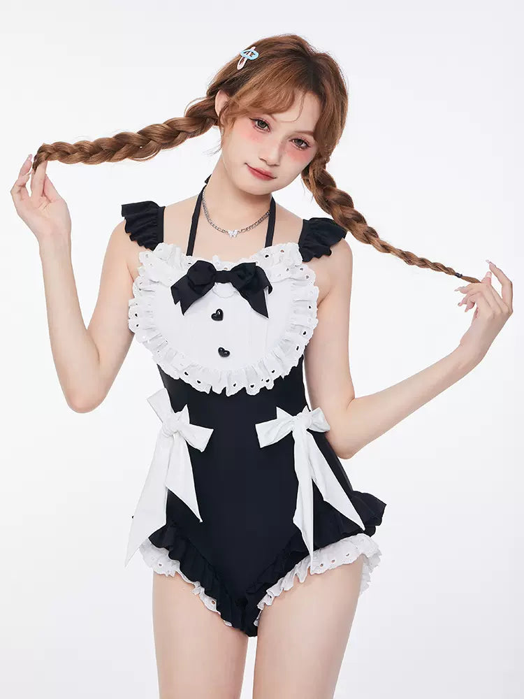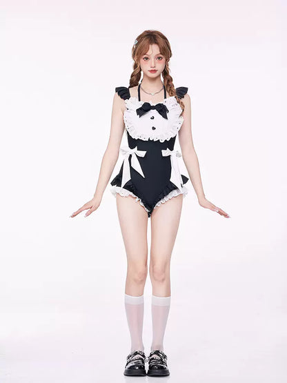 Masked Cat Lazy Maid Black White One Piece Swimsuit