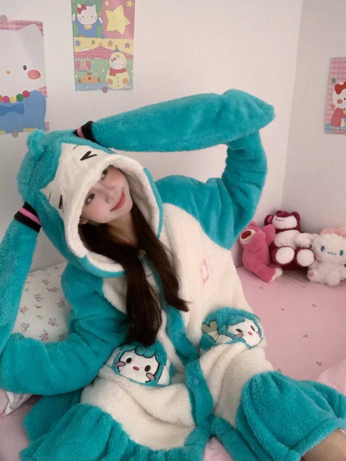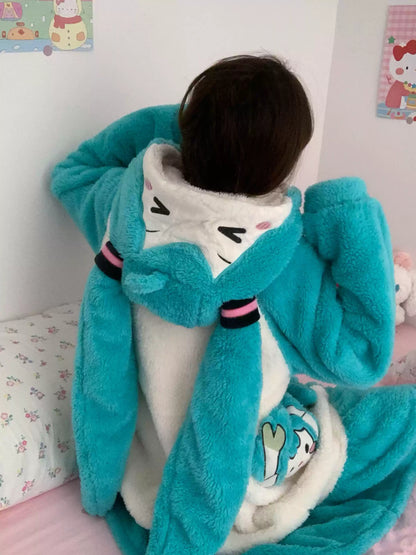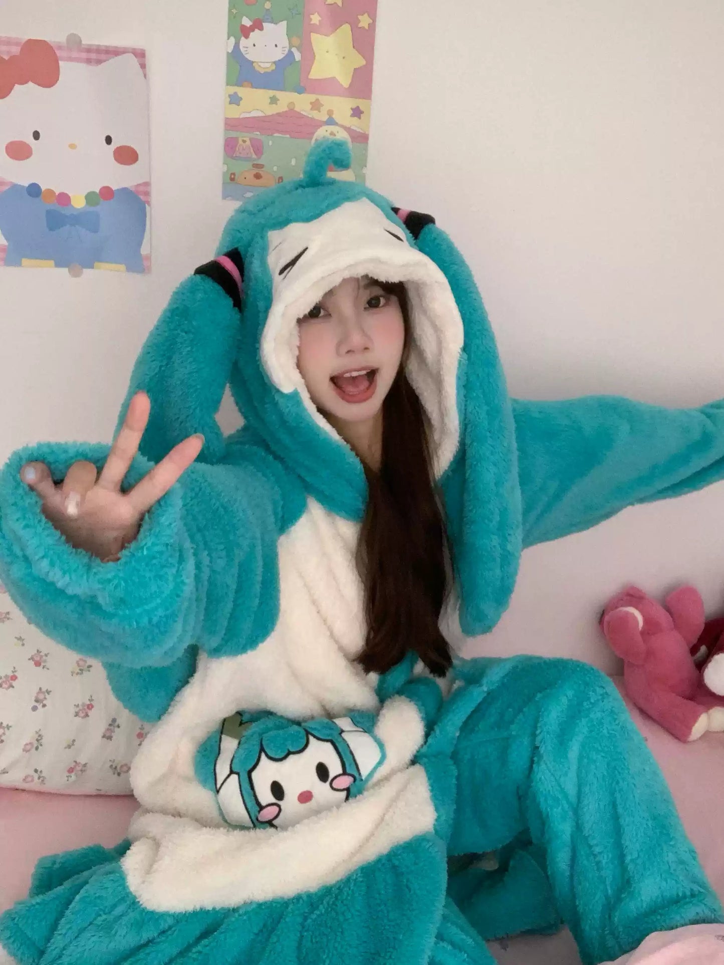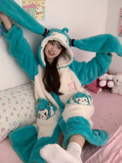 Miku Twintails Green Winter Pajamas Hooded Top & Pants Two Piece
