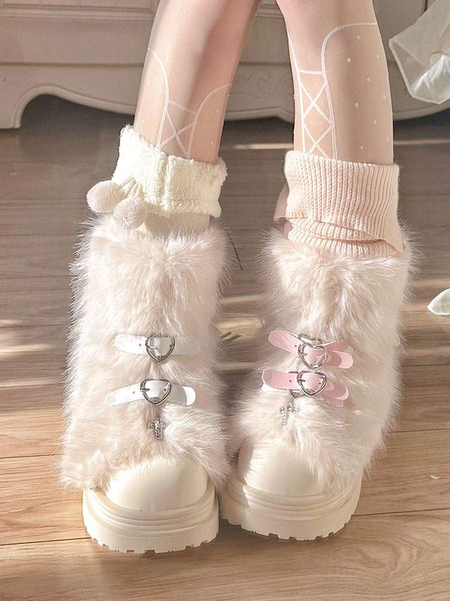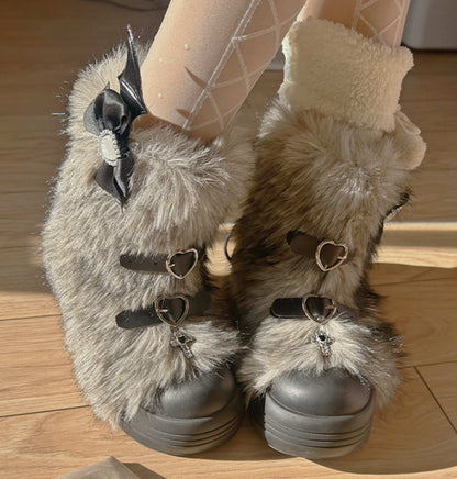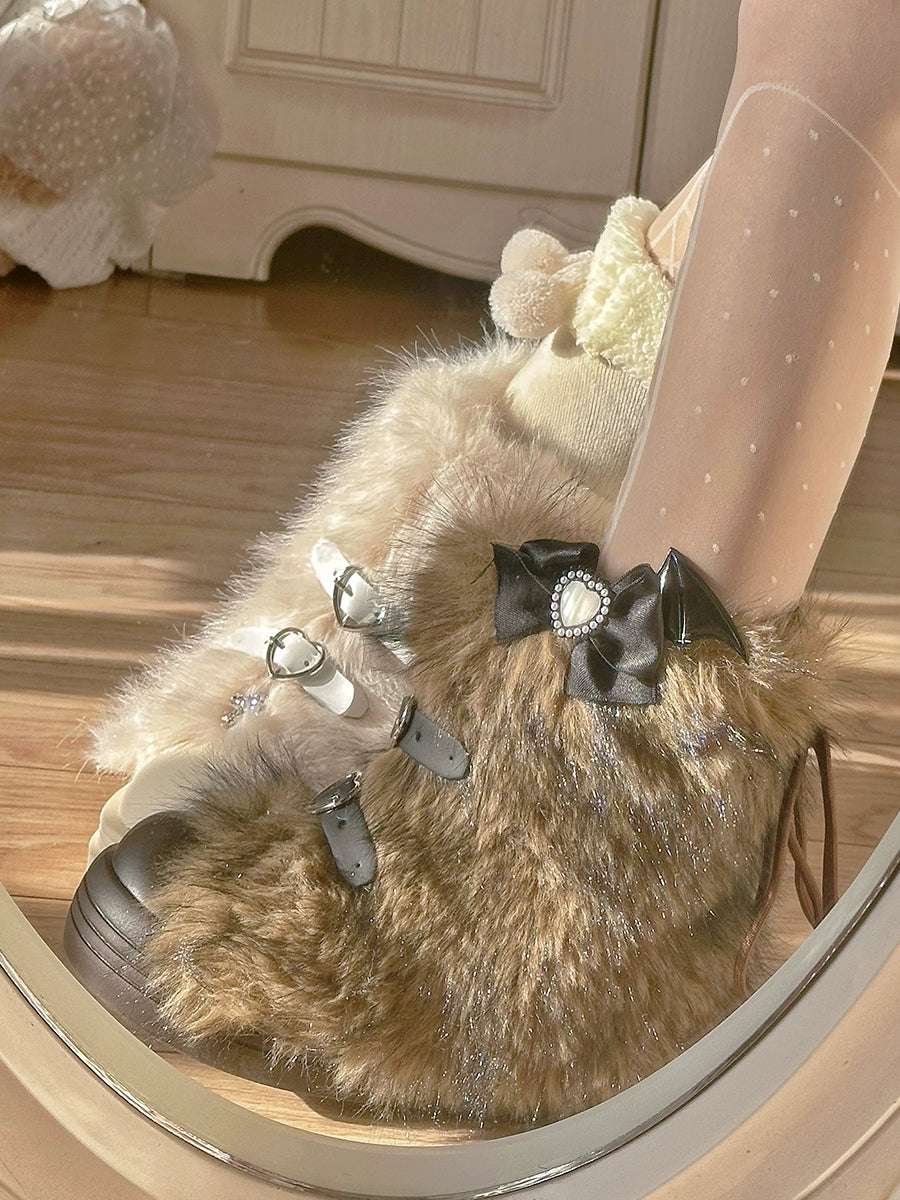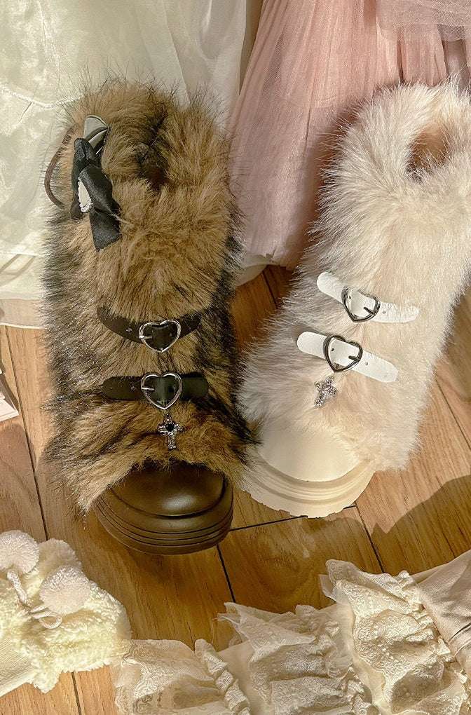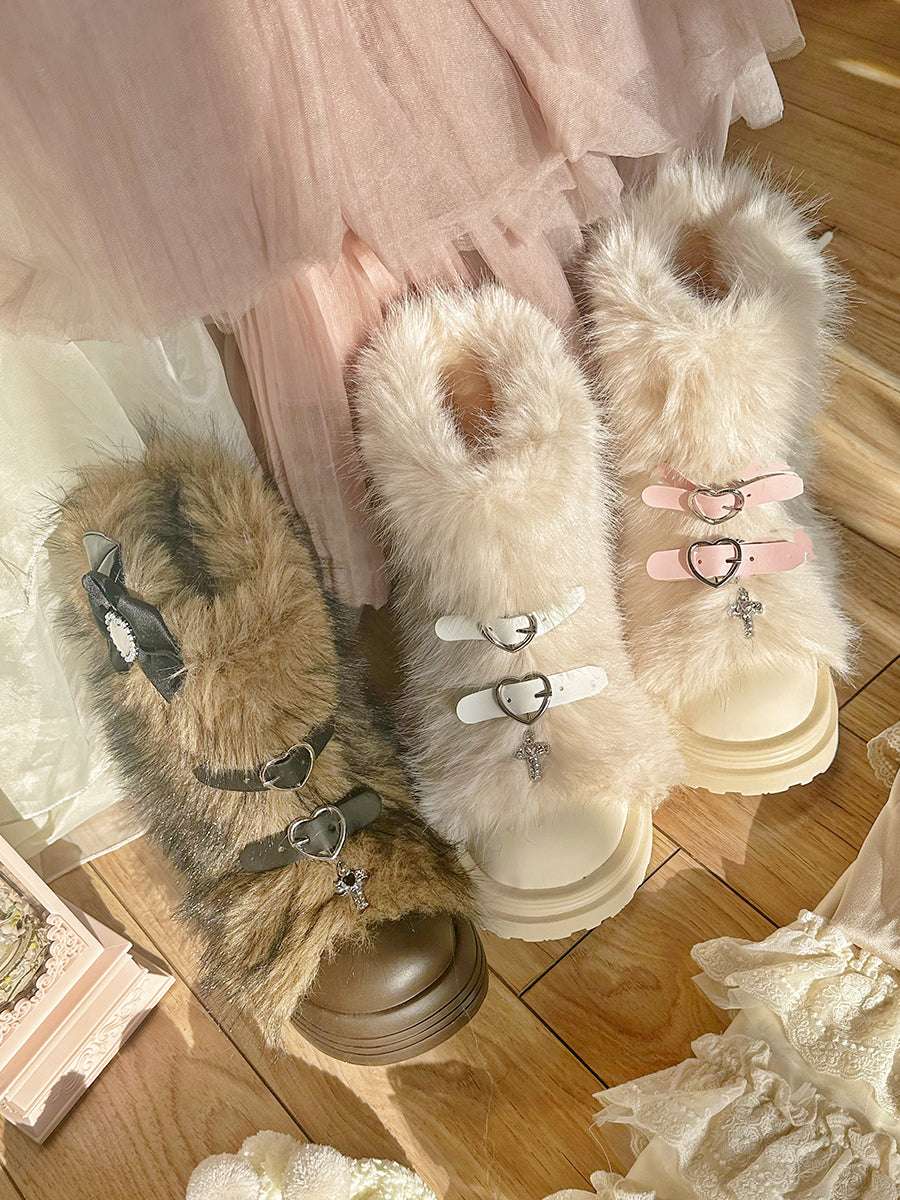 Pinky Fur White Pink Black Brown Winter Plush Snow Boots