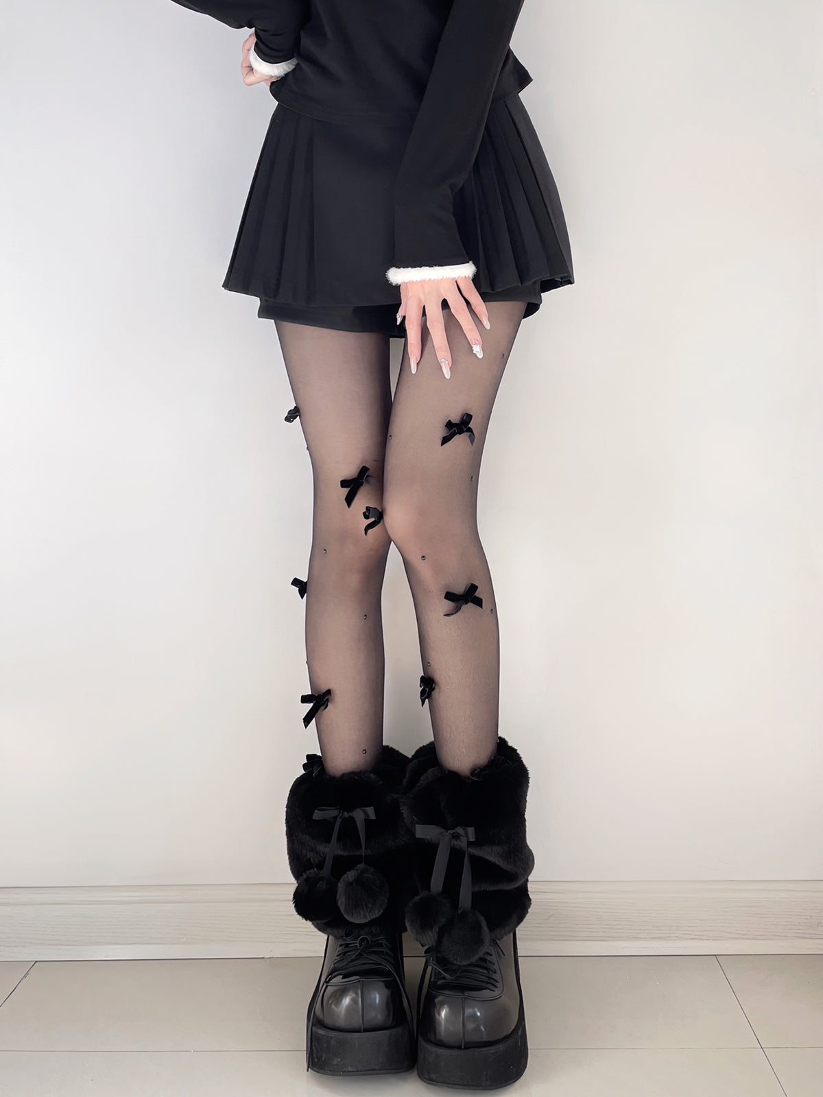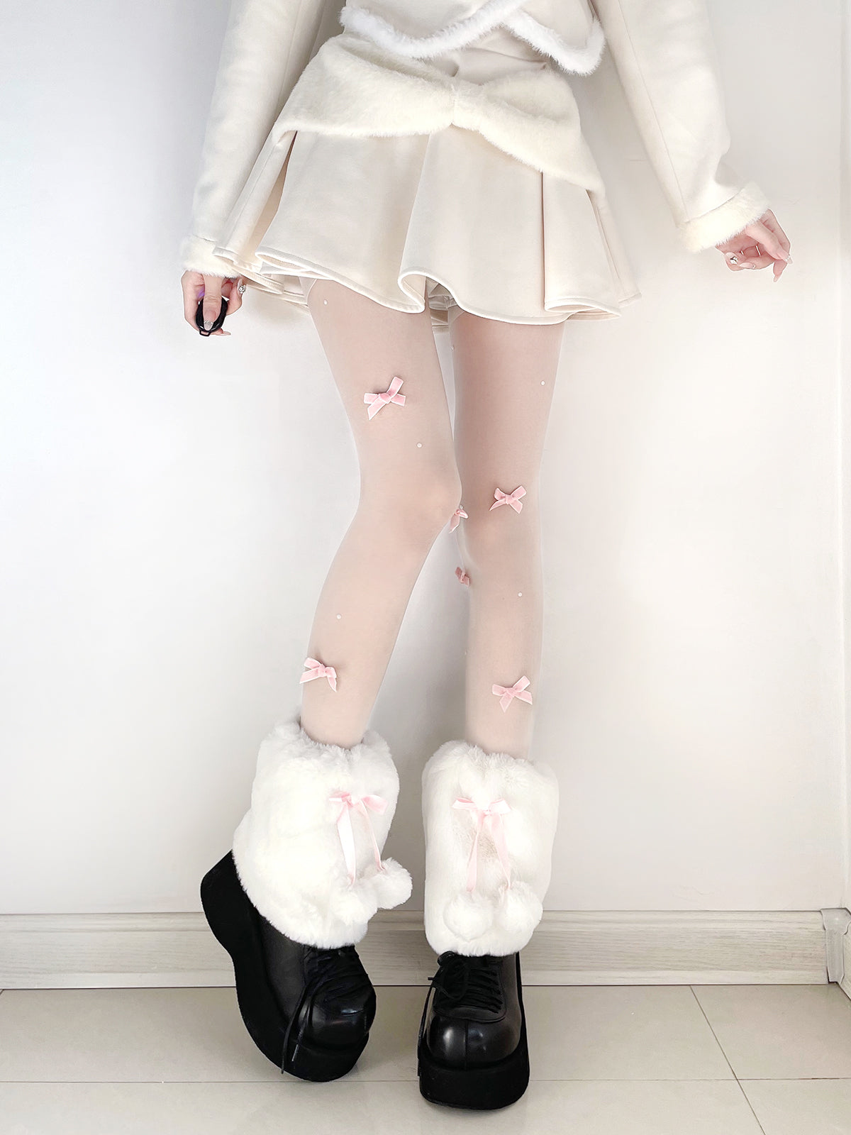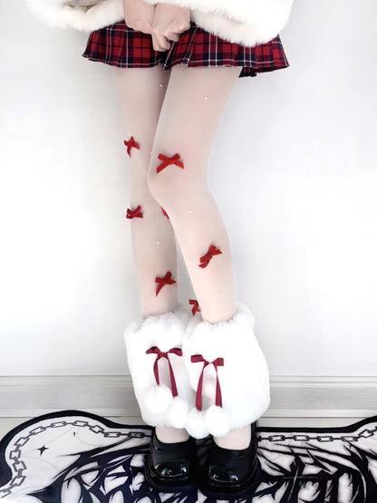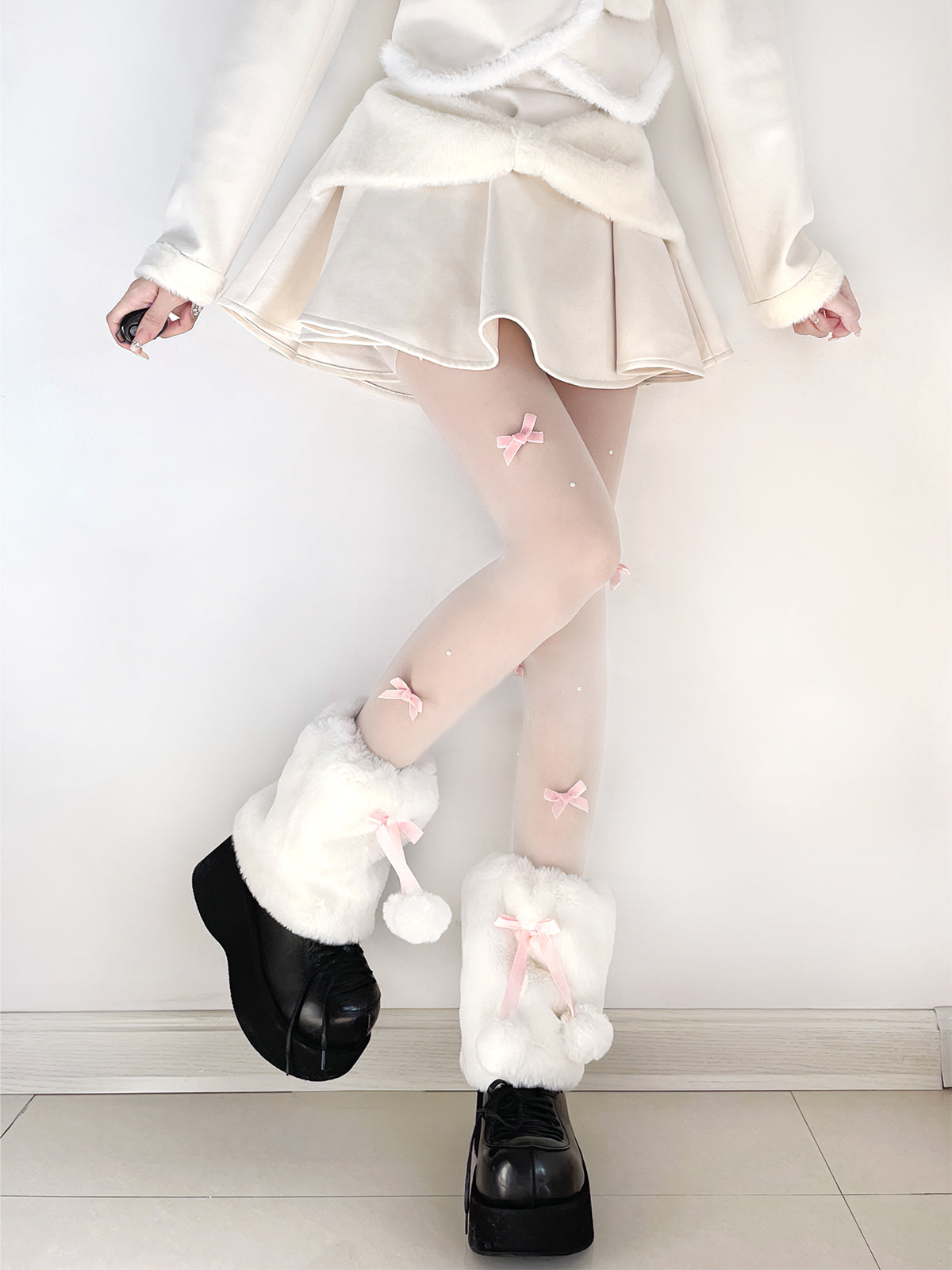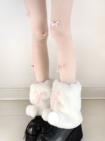 Plush Fur Pompom Balls White Pink Black Red Leg Warmers