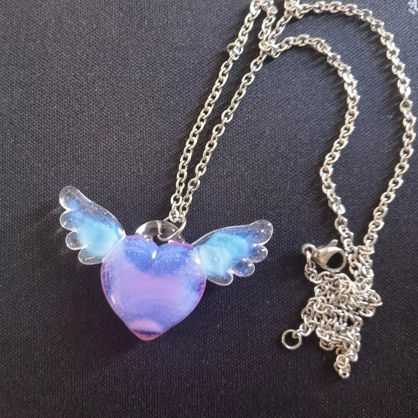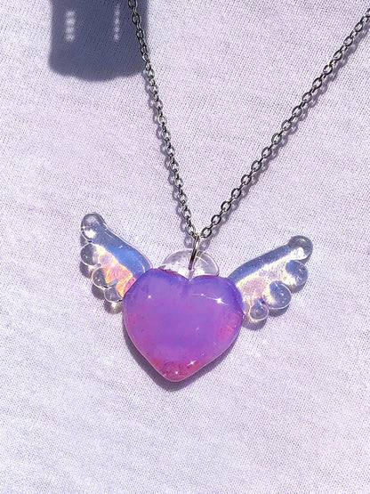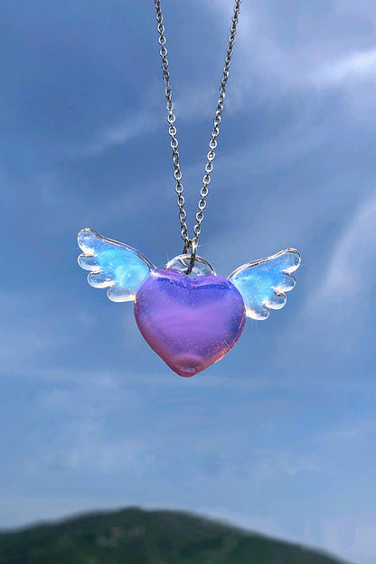 Be inspired by the beauty and energy of this hand-crafted angel heart necklace! Its transparent crystal design and delicate wings truly make it one-of-a-kind. Perfect for those who value unique and meaningful accessories. Feel empowered and stylish with each wear!