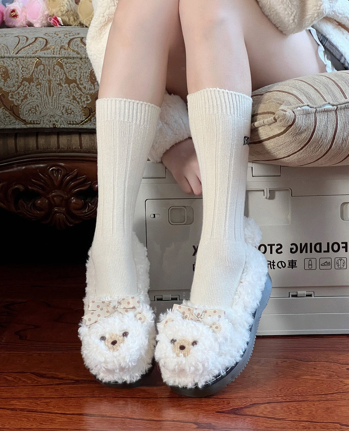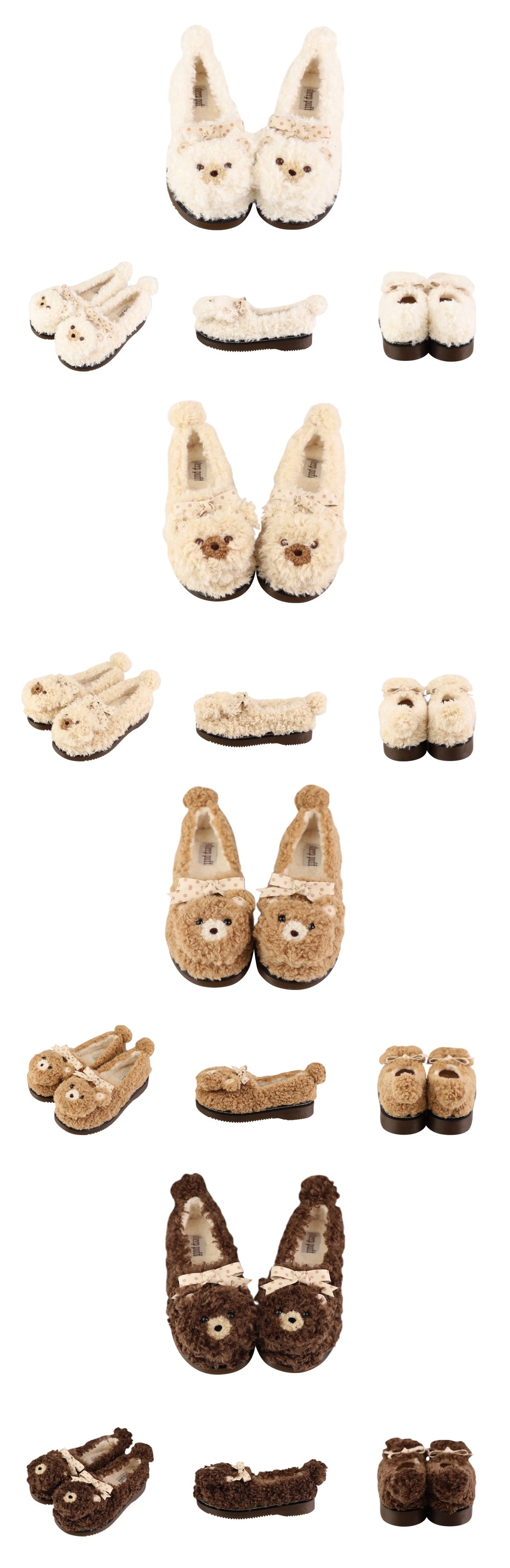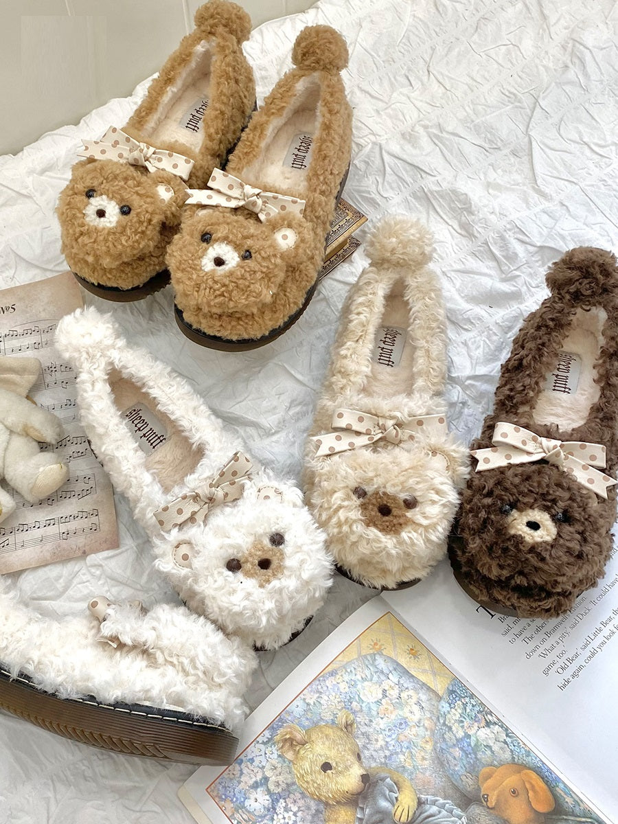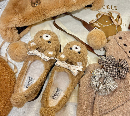 Puffy Sheep Curly Bear White Cream Brown Fuzzy Winter Slippers