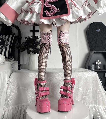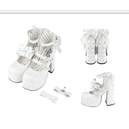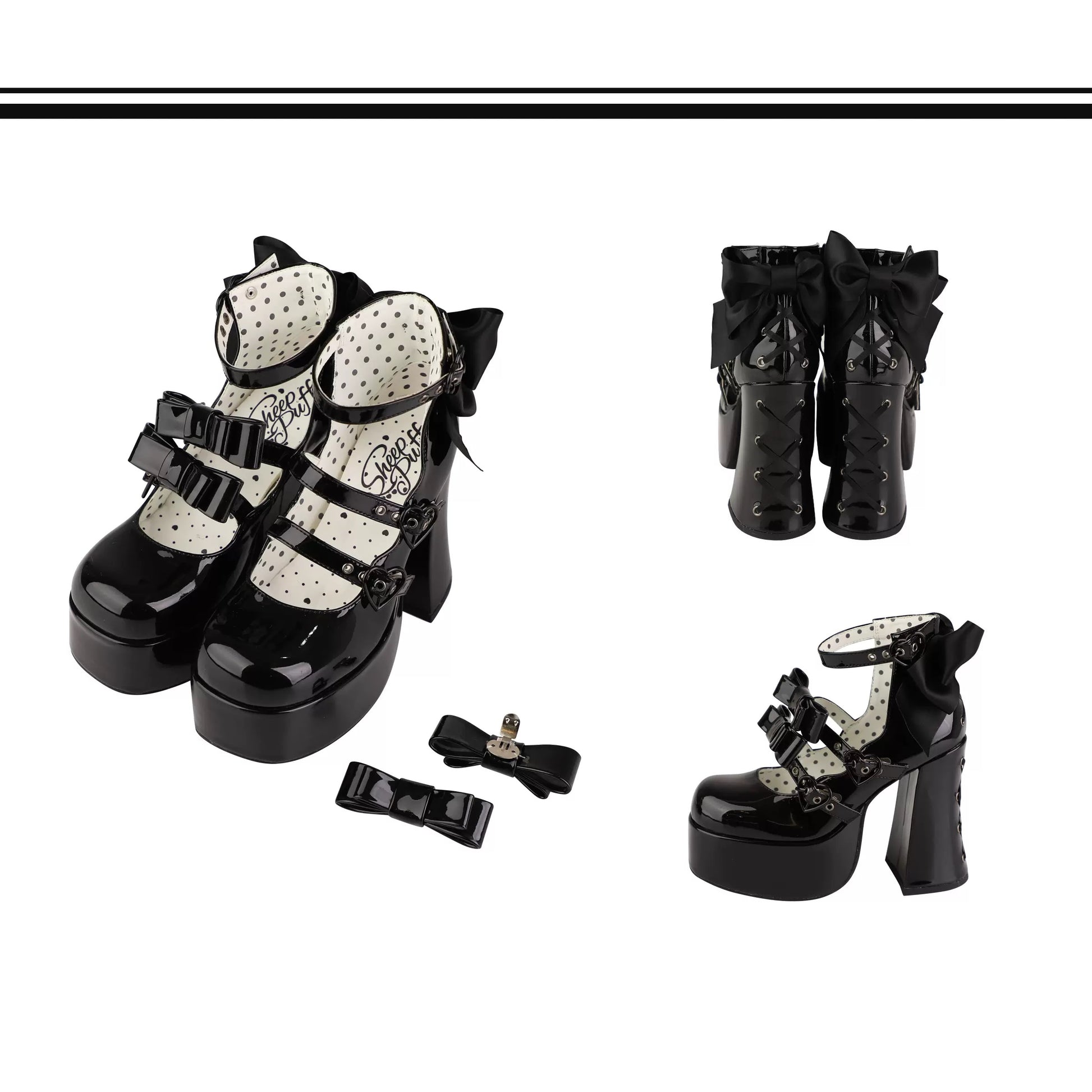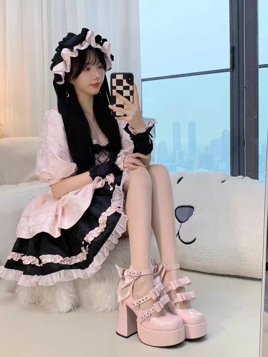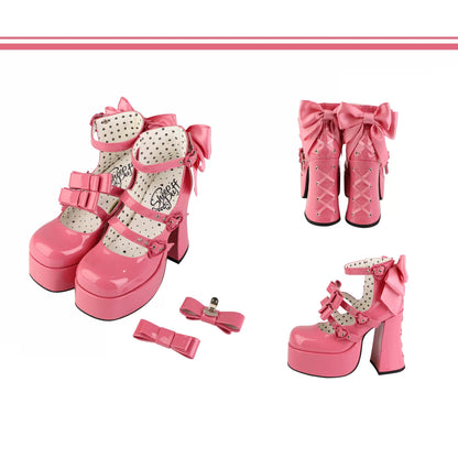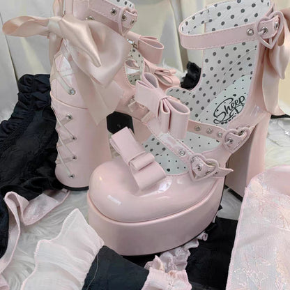 Puffy Sheep Heart Cross Bow Classic Platform Bow High Heels Shoes