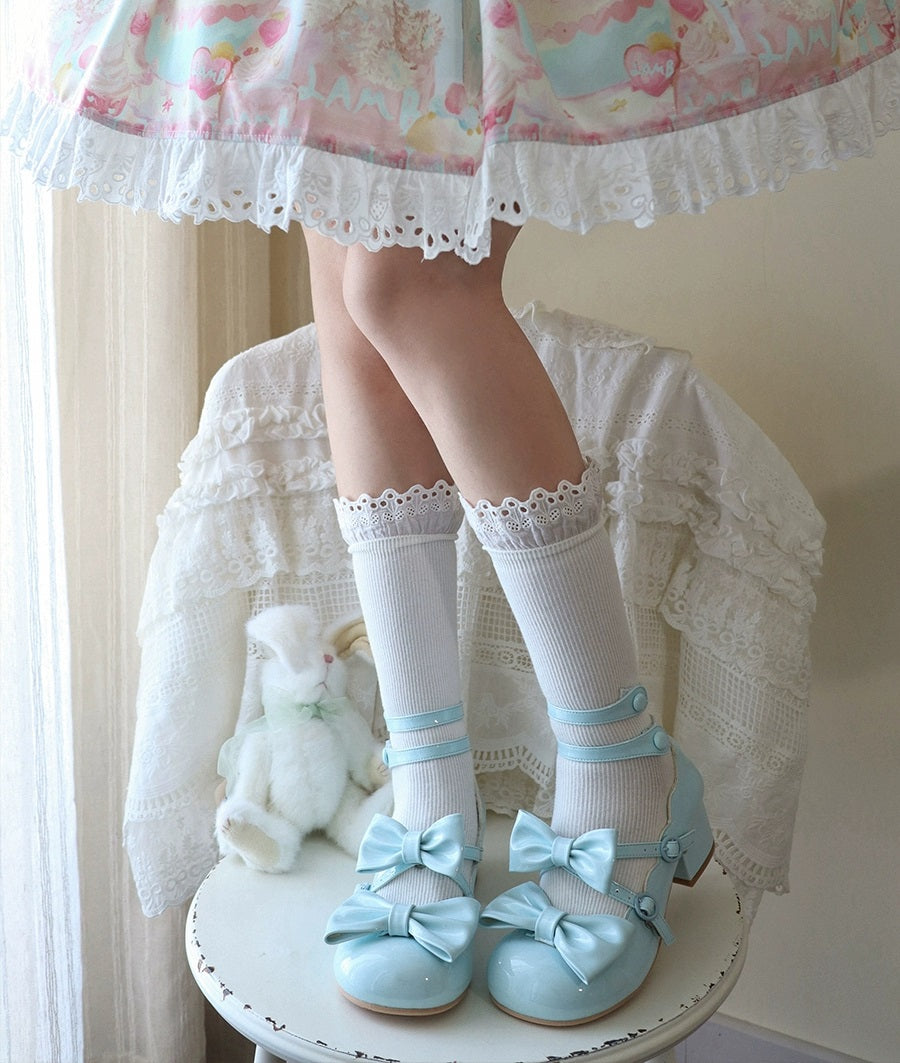 Puffy Sheep Sweet Tea Pink Blue White Black High Heels Shoes