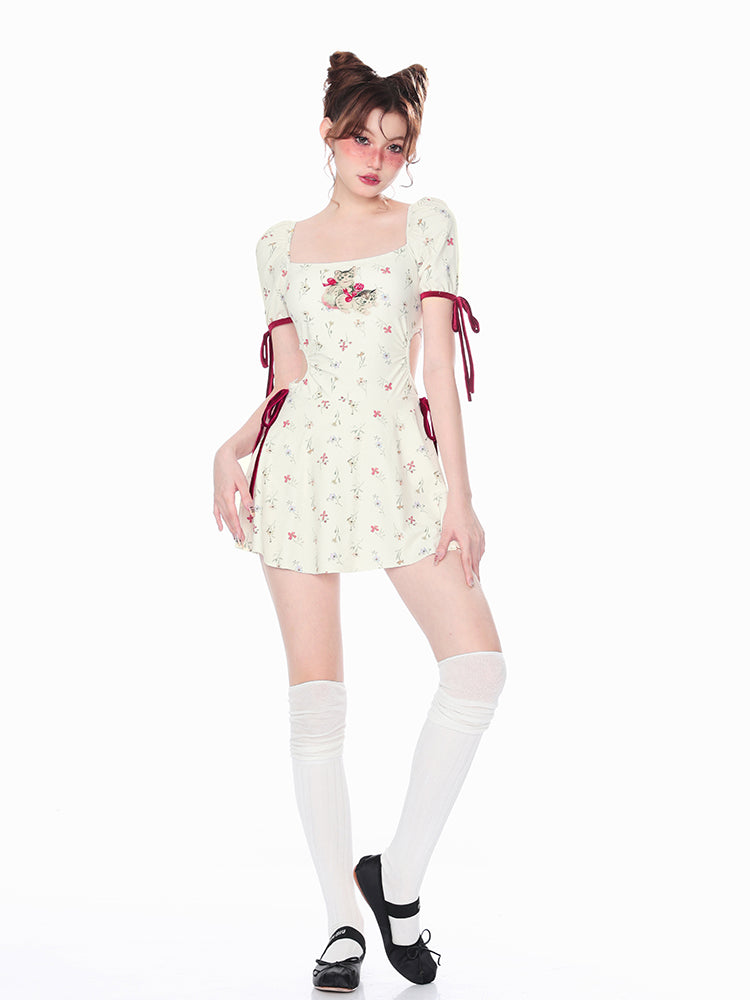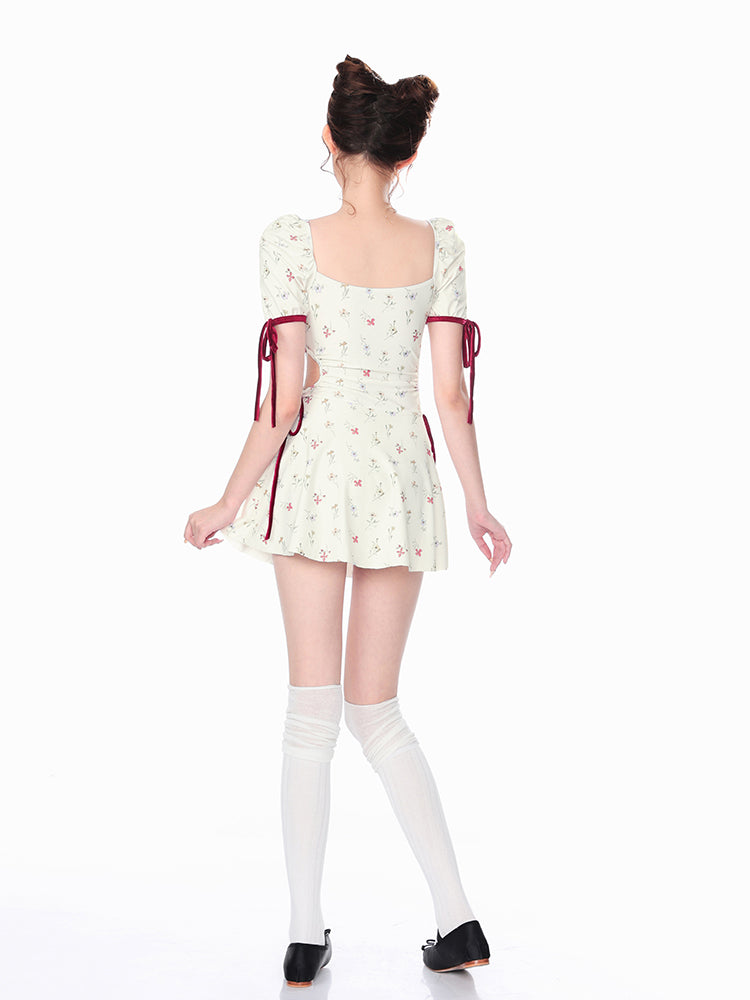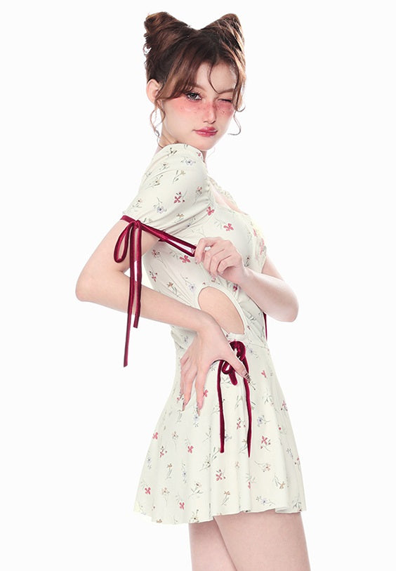 Roca Cream Cat Floral Kitten One Piece Swimsuit