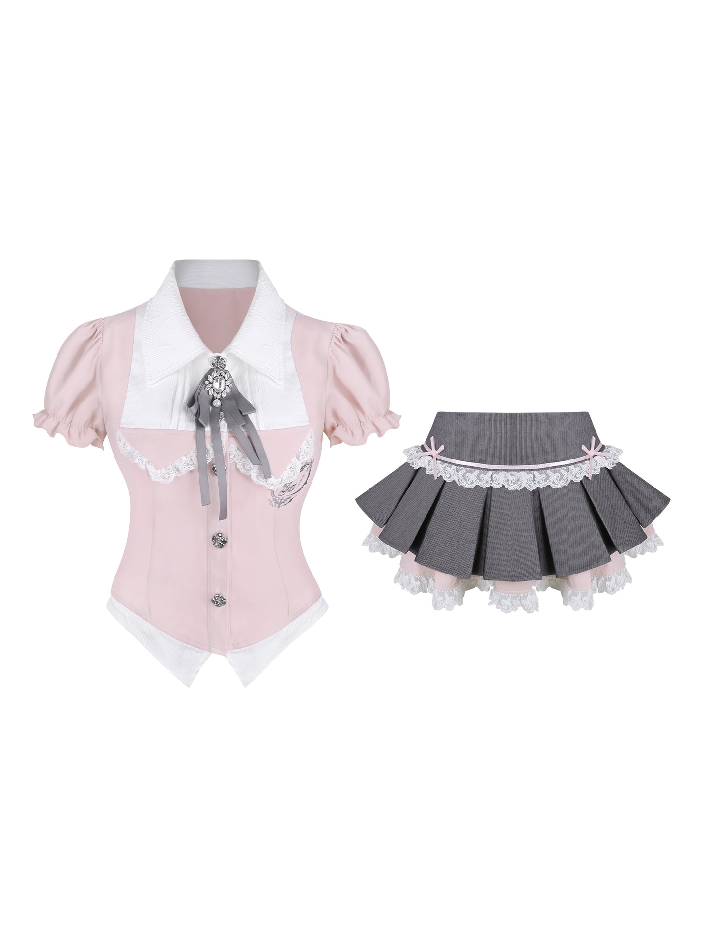 Serendipity College Department Sakura Pink Top & Gray Skirt Two Piece Set