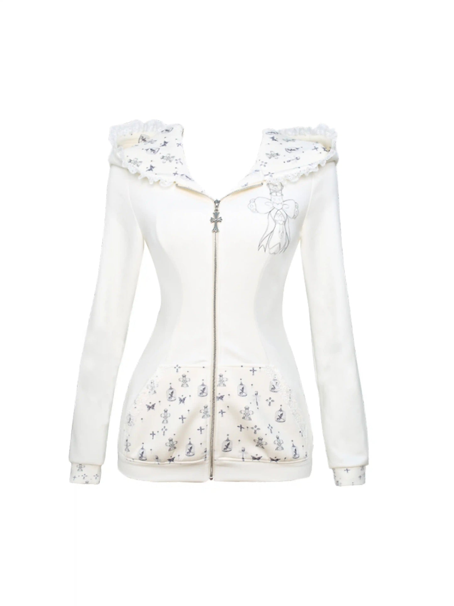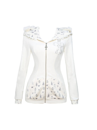 Serendipity Cross Rabbit White Hoodie & Skirt Two Piece Set