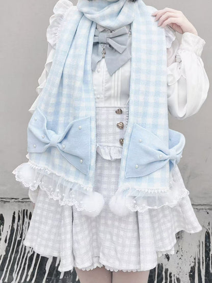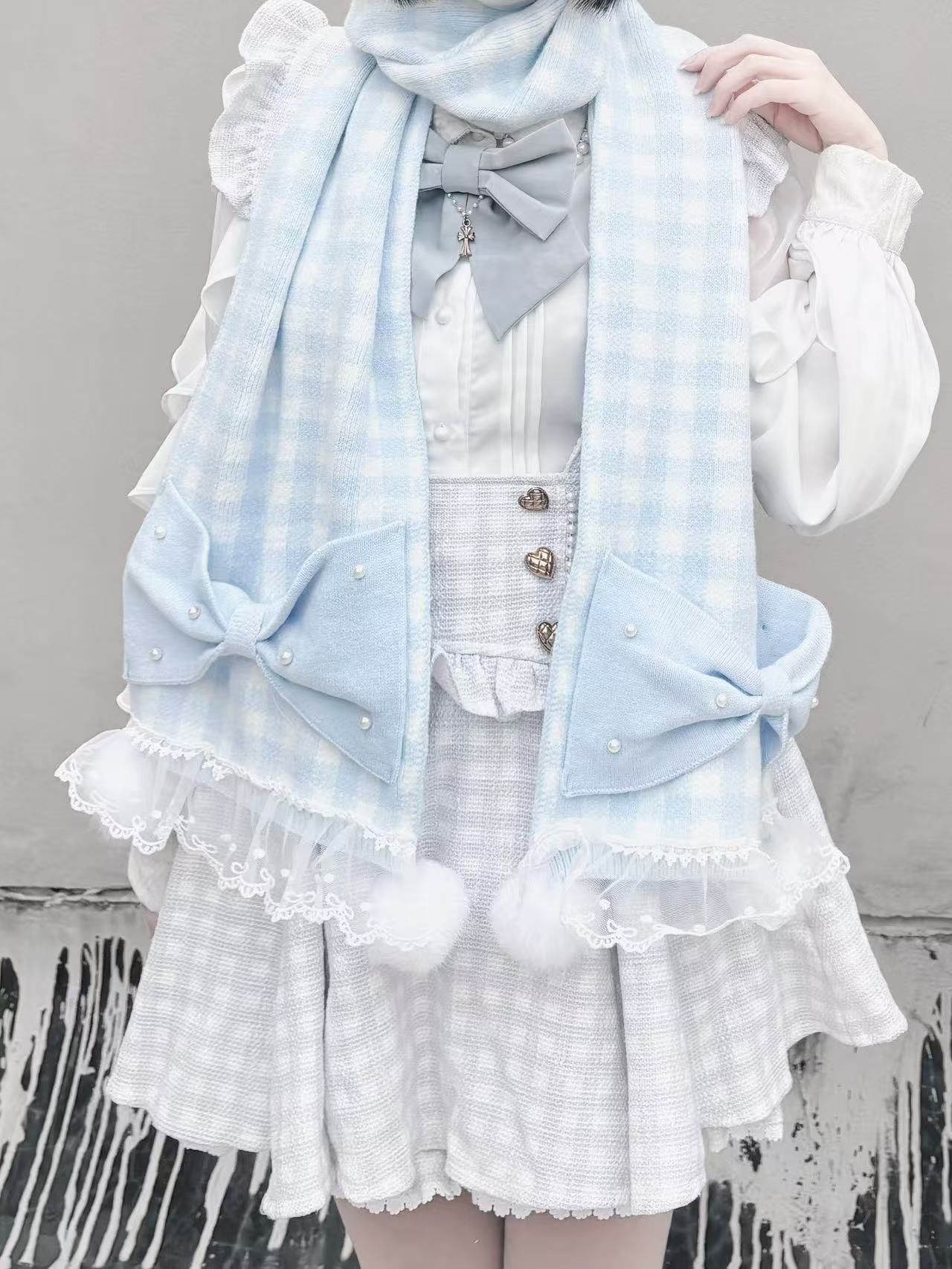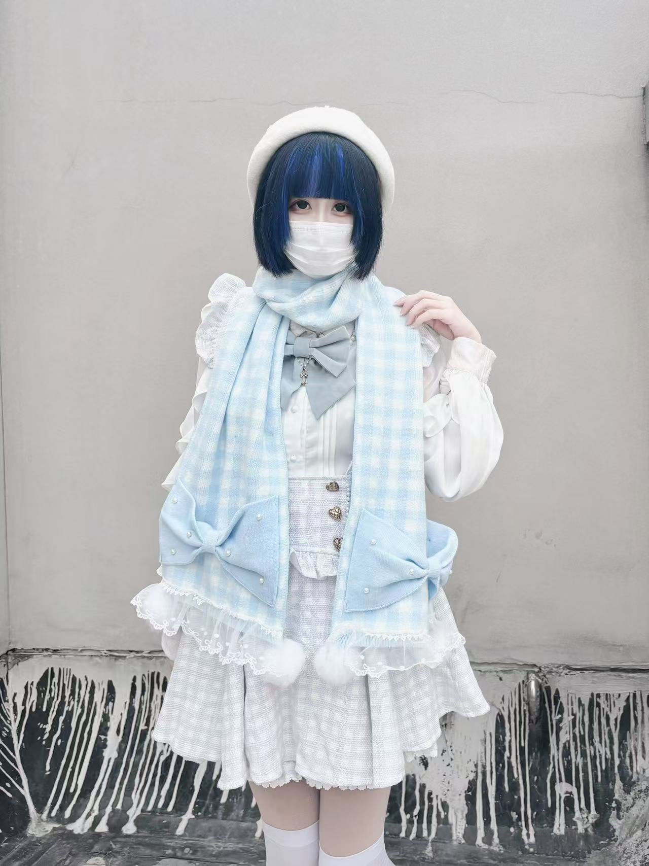 Underground Idol Winter Plaid Pink Blue Black White Scarf Scarves