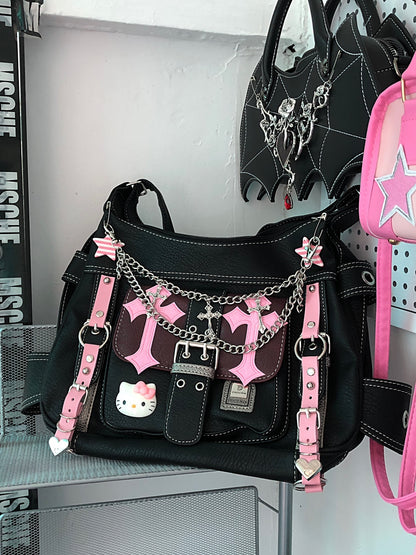 Y2K Kitty Cat Goth Large Capacity Student Messenger Bag