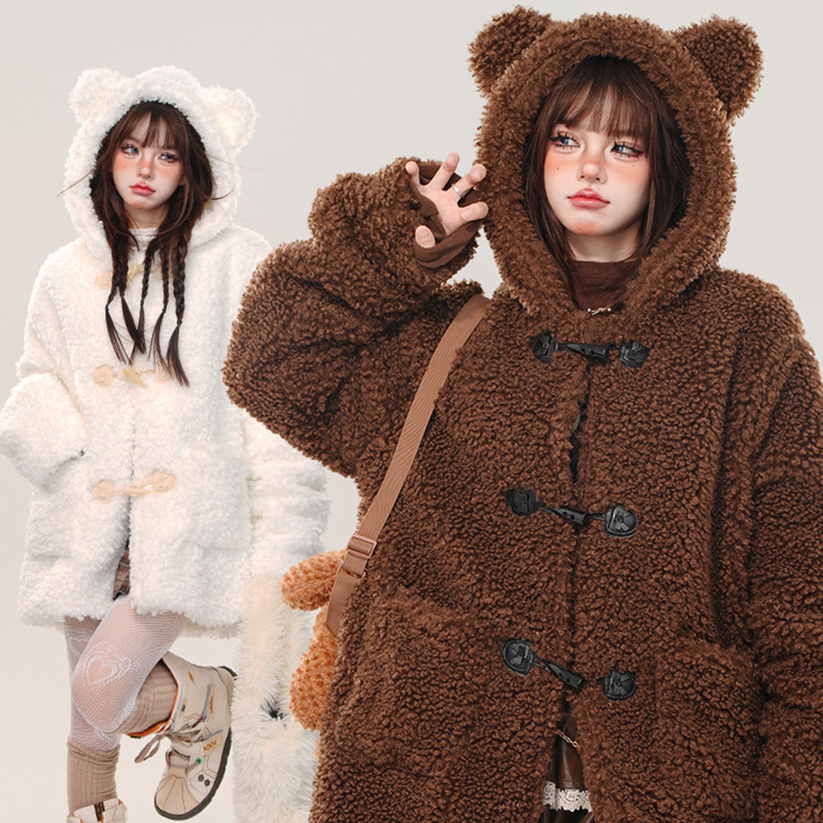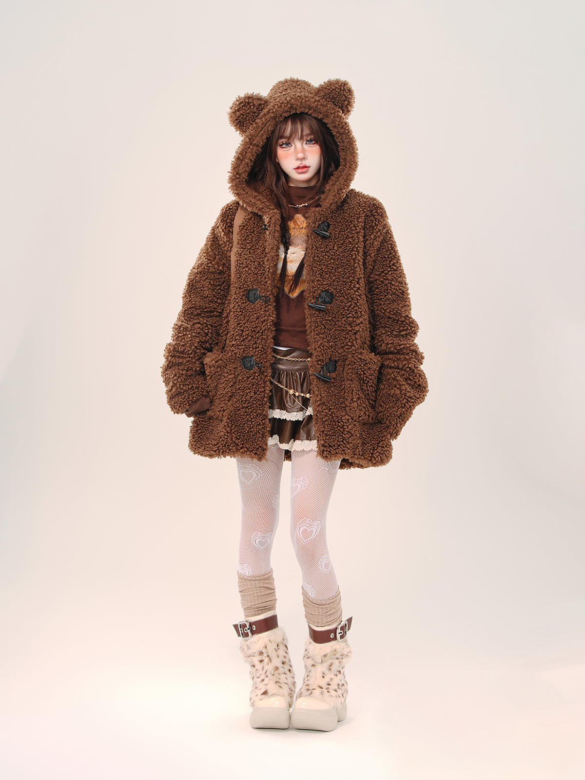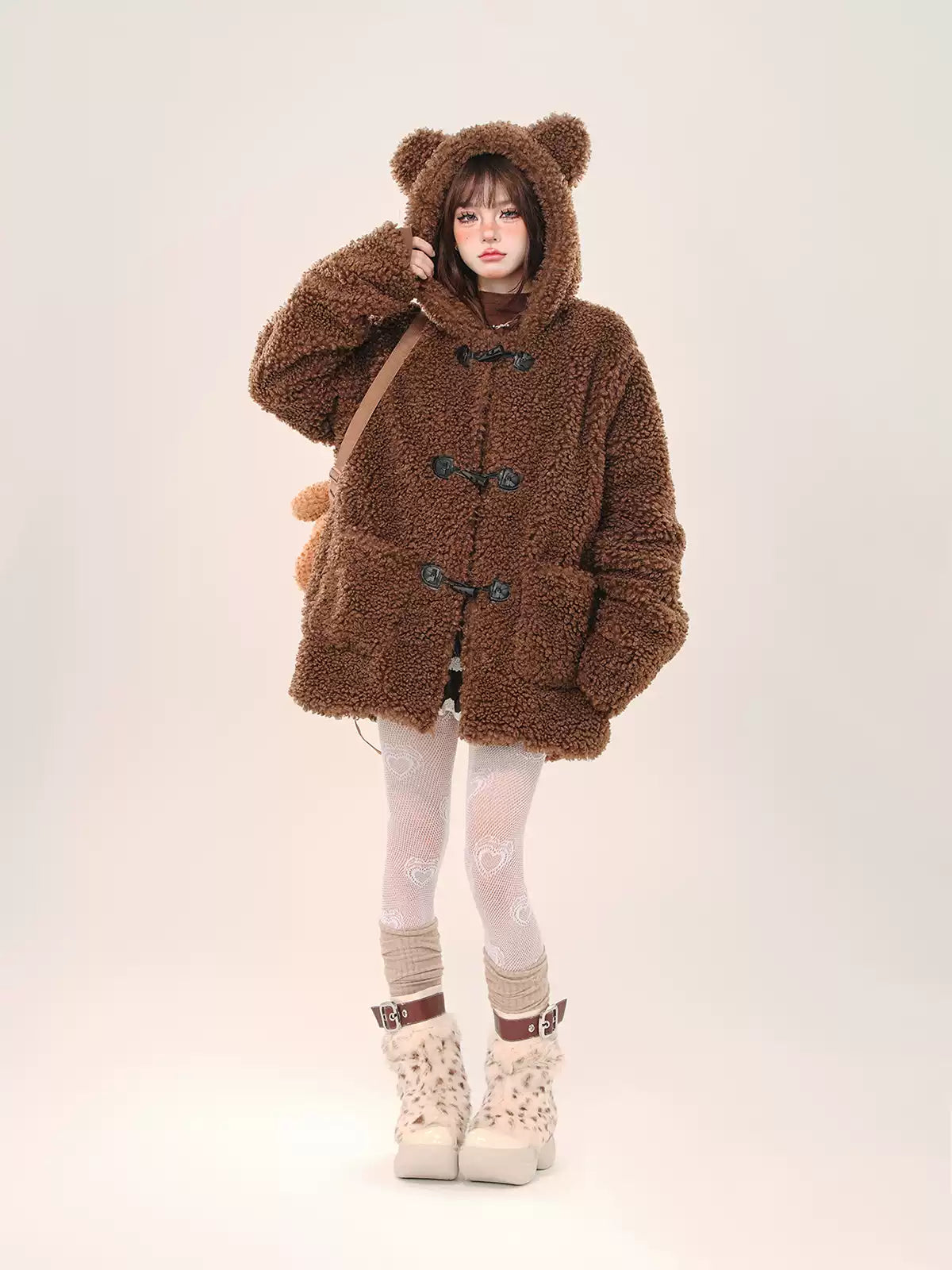 Young Eyes Plush Teddy Bear Brown White Jacket Hoodie