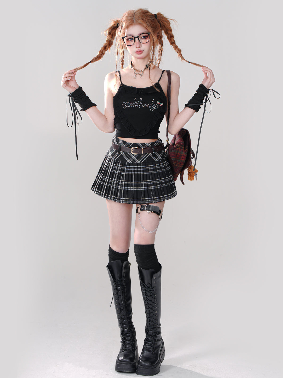 Young Eyes School Girl Black Plaid Mini Skirt