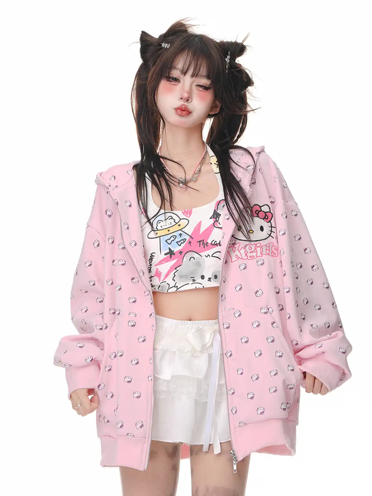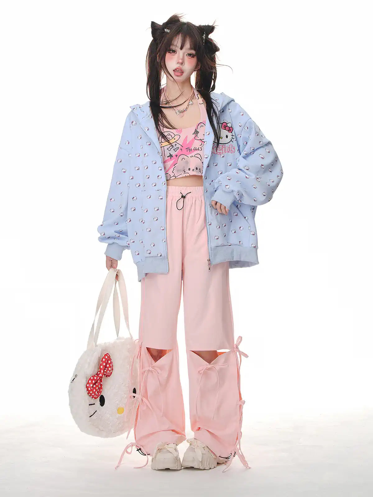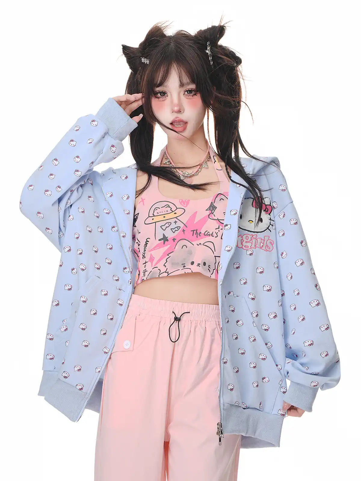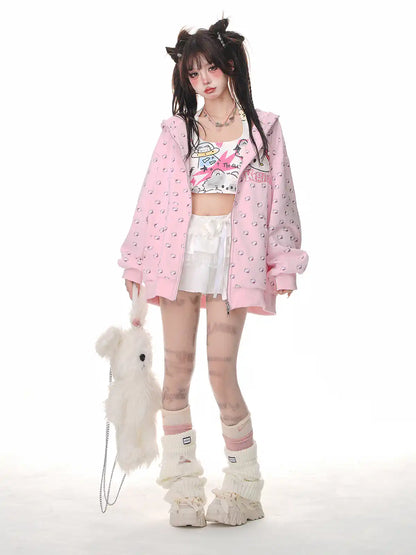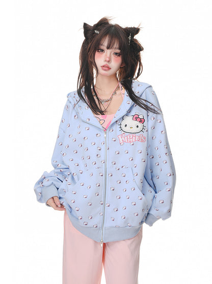 Young Eyes Sweet Kitty Pink Blue Cat Ears Jacket Hoodie