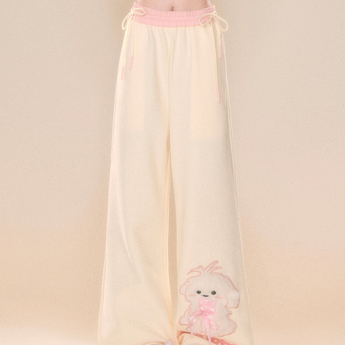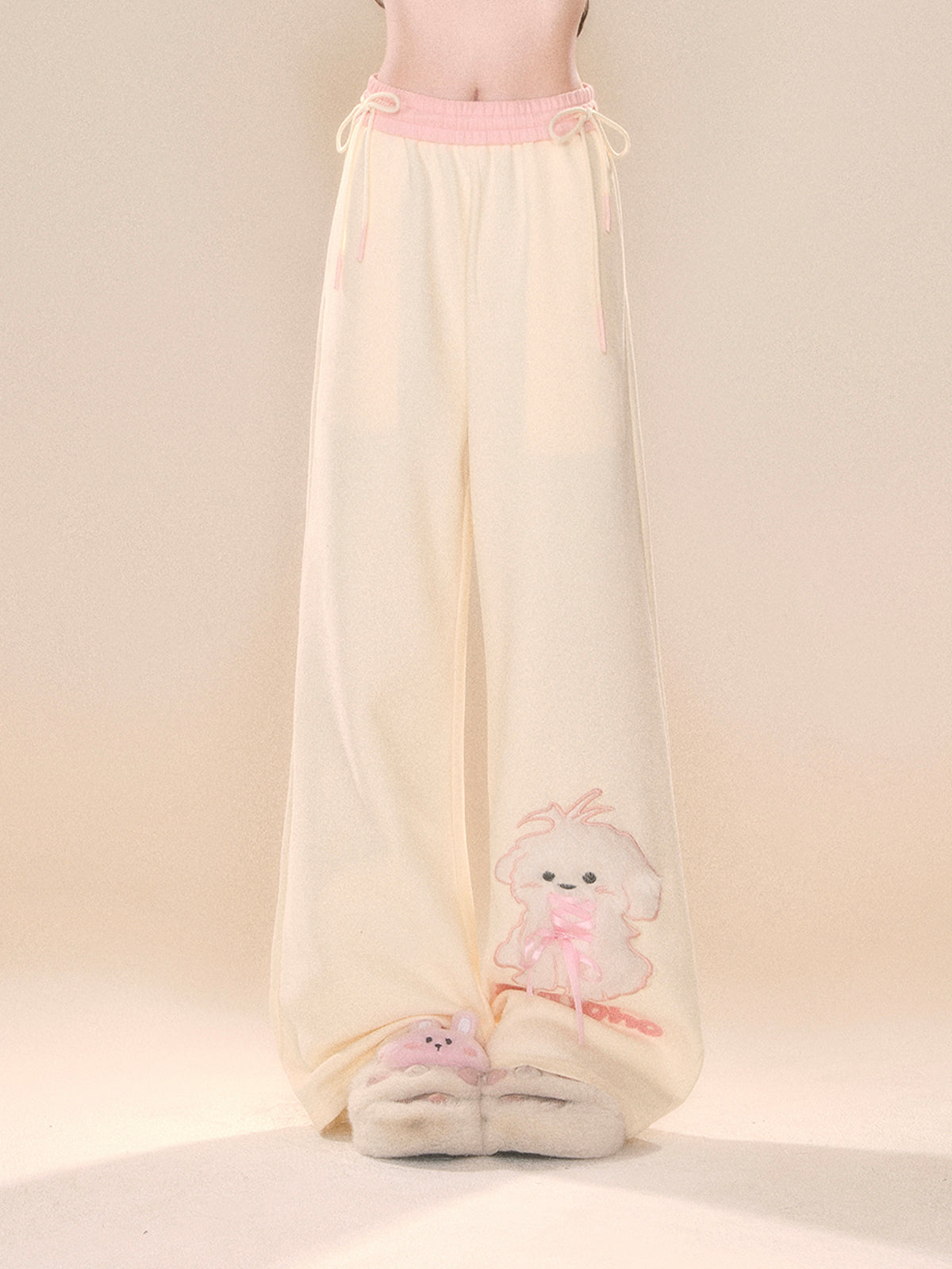 Young Eyes White Puppy Dog Cream Elastic Waist Sweatpants