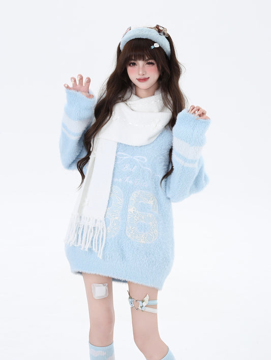 Crazy Girl 86 Pink Black Blue White Fuzzy Sweater