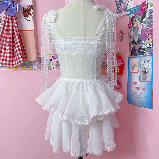 Coquette Sexy Kitty Lace White Pink Cake Dress Lingerie