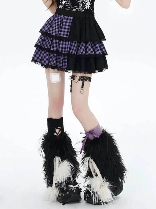 Crazy Girl Gothic Idol Plaid Red Pink Purple Skirt