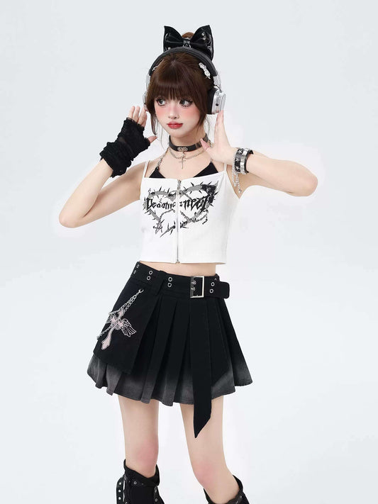 Crazy Girl Graphics Black & White Fake Two Piece Camisole Top