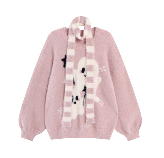 Crazy Girl Ghost Paradise Black Pink Red Striped Fuzzy Sweater Scarf