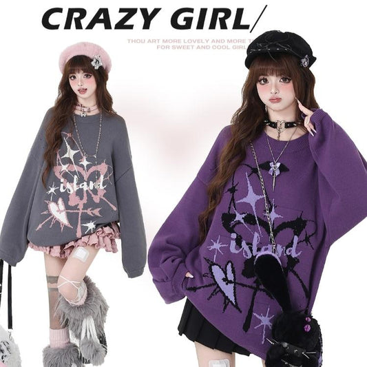 Crazy Girl Moonfall Untitled Butterfly Black Gray Purple Sweater