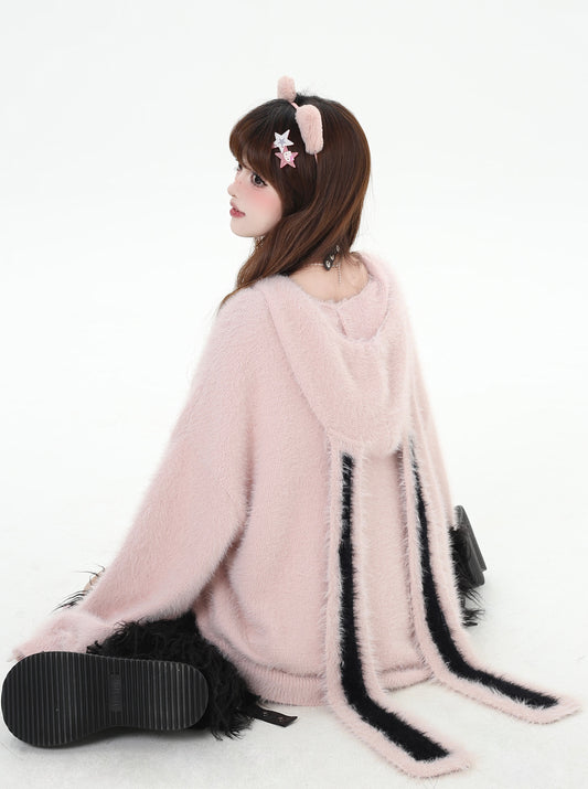 Crazy Girl Misty Winter Messenger Pink Black White Rabbit Ears Hoodie