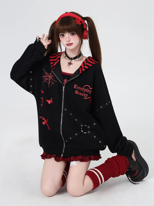 Crazy Girl Night Escape Vampire Black Gray Red Jacket Hoodie
