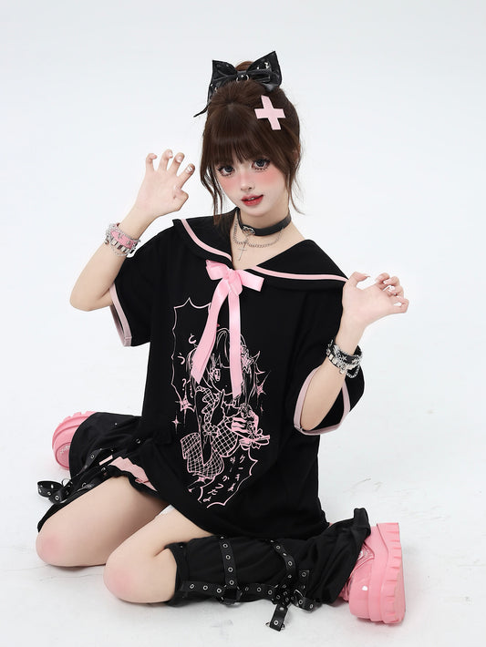 Crazy Girl Soft Girl Rule Sailor Collar Pink Black Sweatshirt