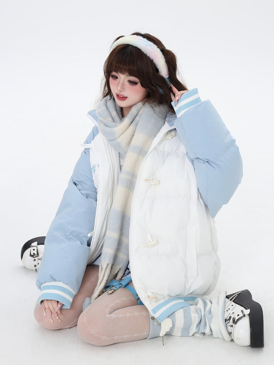 Crazy Girl Stereo Toggles White Pink Blue Puffer Jacket