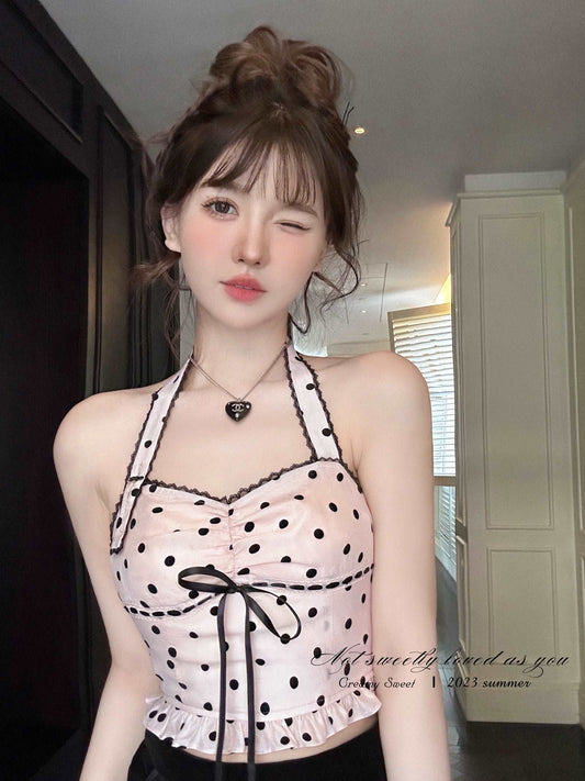 Creamy Cute Polka Dot Pink Halter Neck Camisole Top