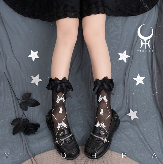 Dream Witch Gummy Bear and Toffee Rabbit Lolita Black White Lace Socks