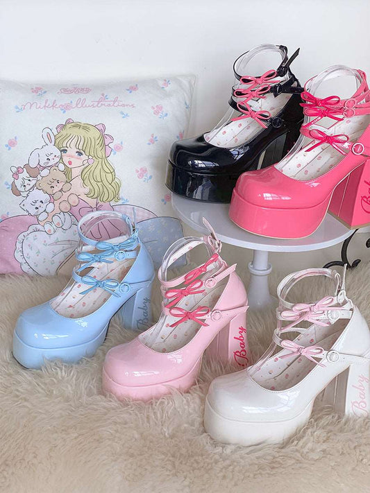 Dreamy White Tea Baby Bow EGL Platform High Heels Shoes