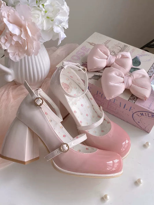 Dreamy White Tea Gradient Blush Lolita Black White Pink Blue High Heels Shoes