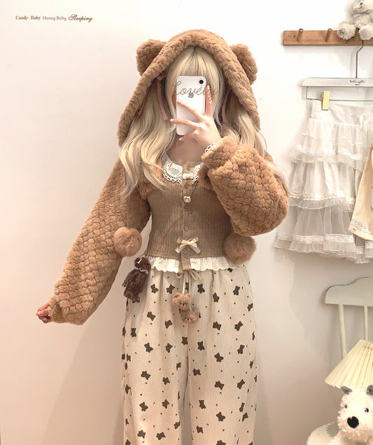 Dormir Doll Winter Pink Rabbit Ears & Brown Bear Ears Hoodie Short Jacket